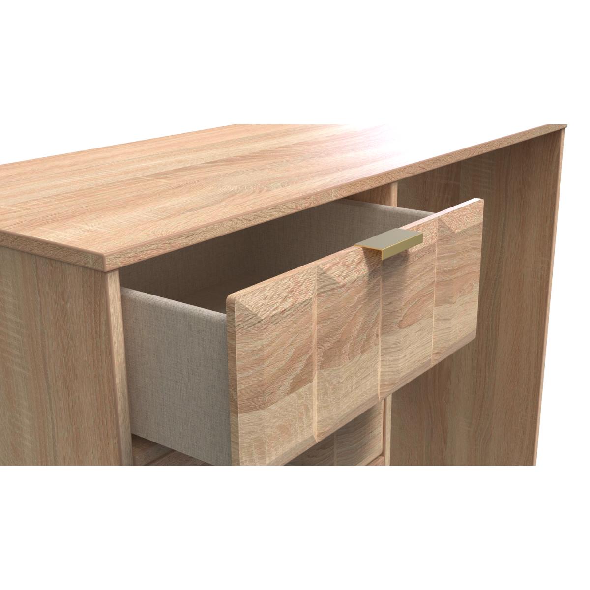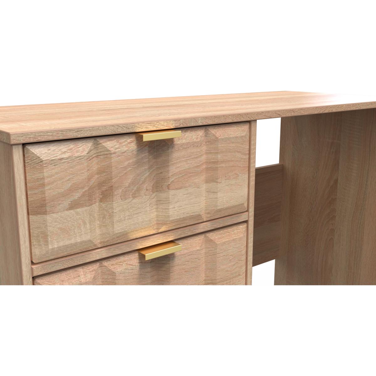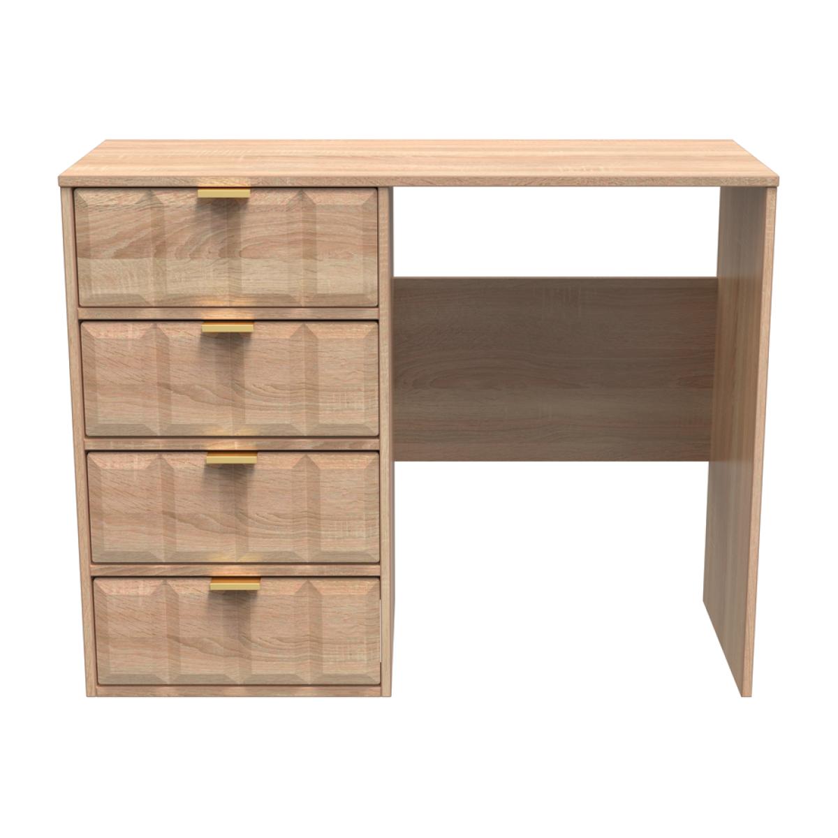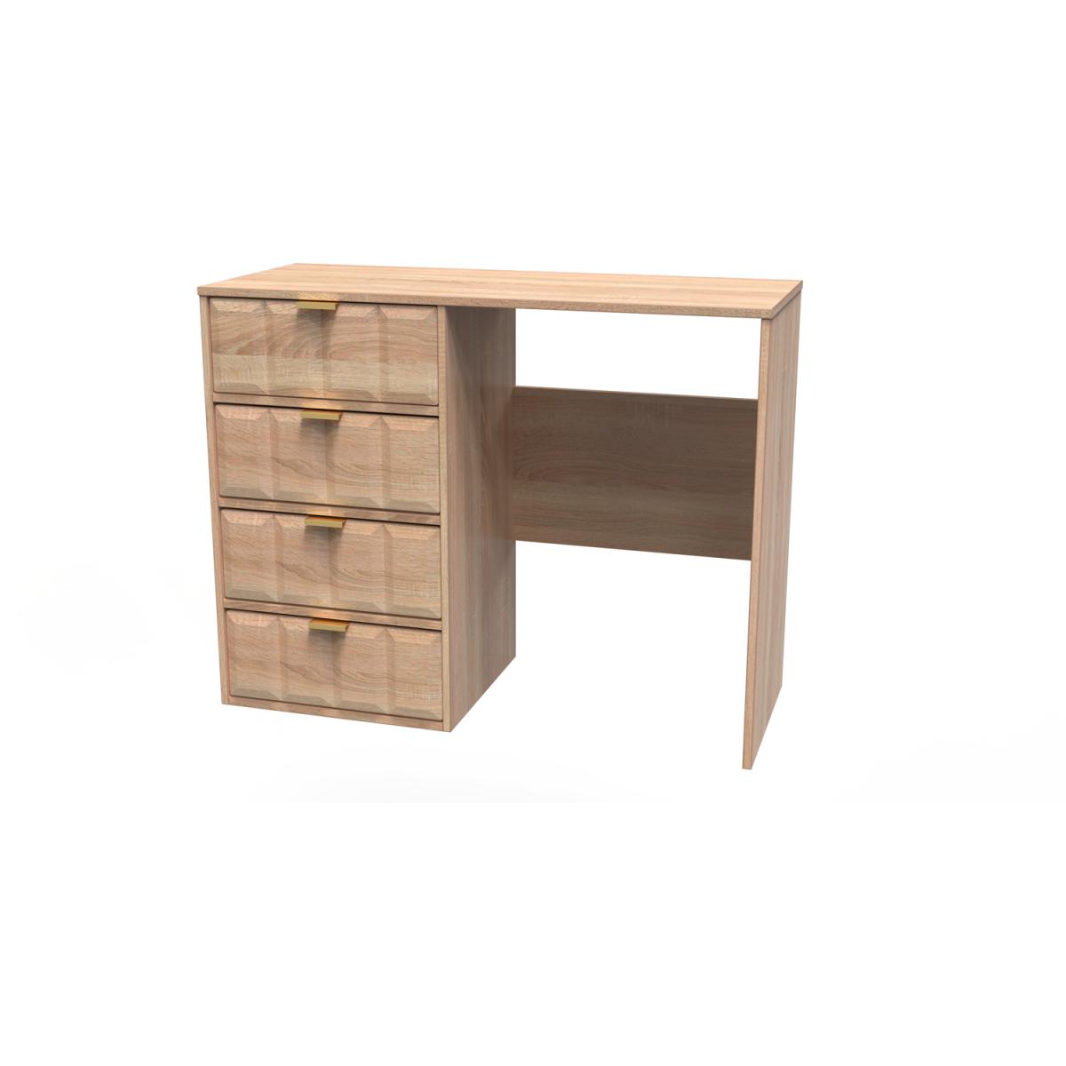 This 4 Drawer Vanity Desk is equally at home in the bedroom or the office. A modern and distinctive range. Named for the unique "Cube" patten of the drawer and door fronts. Also features Gold Metal Handles and Gold Hairpin Legs. Comes in a wide range of colours including eye cathching two tone colour combinations. All our furniture is made in the United Kingdom, to the highest quality. It is delivered direct to your location of choice by one of our two man delivery teams, and come full assembled (although legs may be removed to prevent damage in transit).