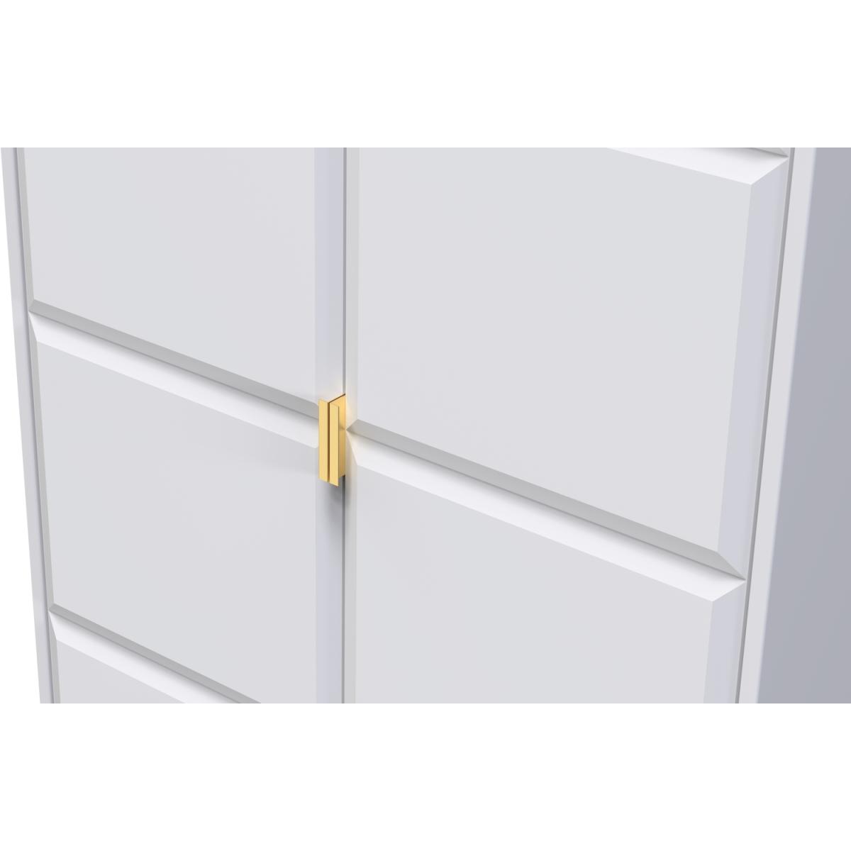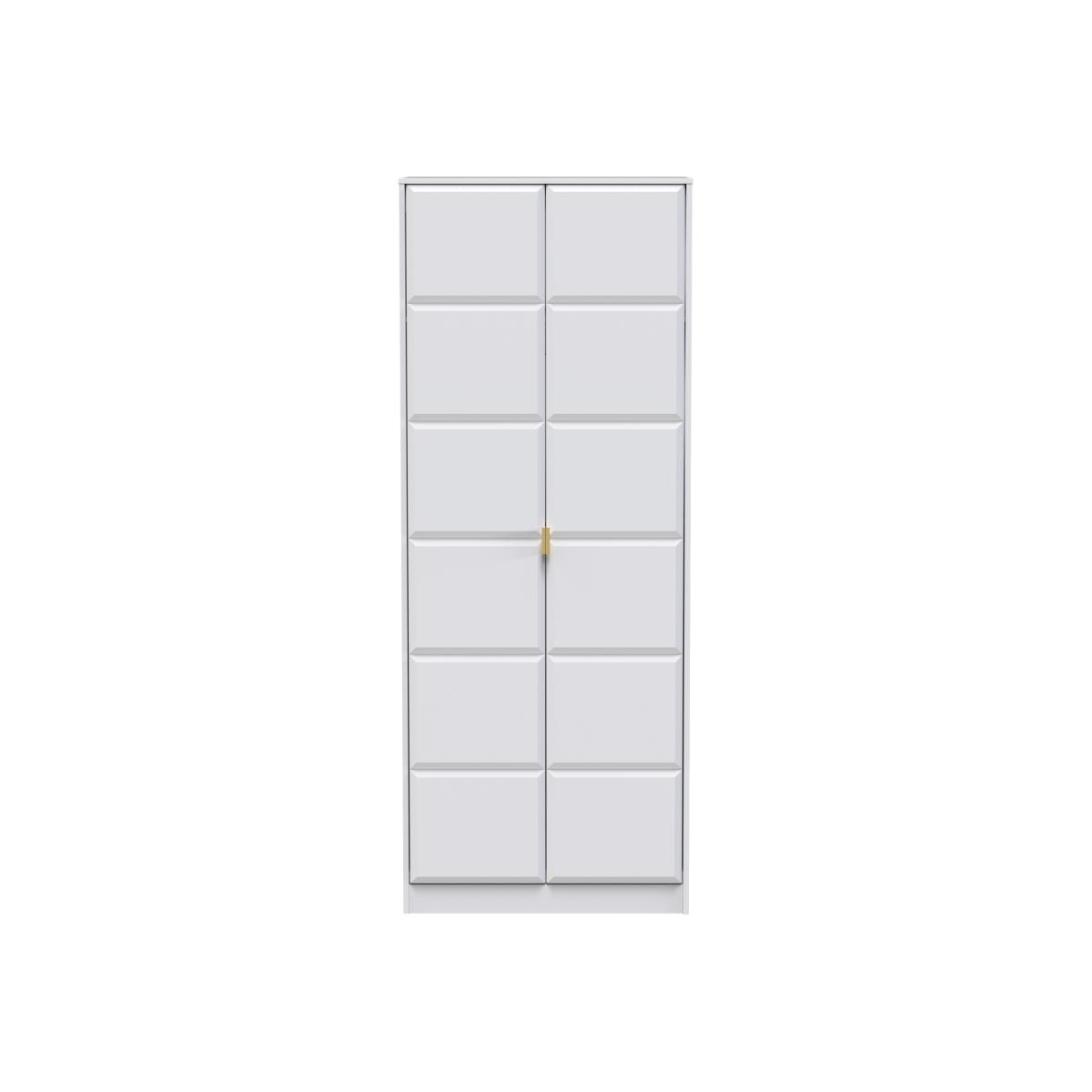 This tall double door wardrobe is perfect for any bedroom.. A modern and distinctive range. Named for the unique "Cube" patten of the drawer and door fronts. Also features Gold Metal Handles and Gold Hairpin Legs. Comes in a wide range of colours including eye cathching two tone colour combinations. All our furniture is made in the United Kingdom, to the highest quality. It is delivered direct to your location of choice by one of our two man delivery teams, and come full assembled (although legs may be removed to prevent damage in transit).