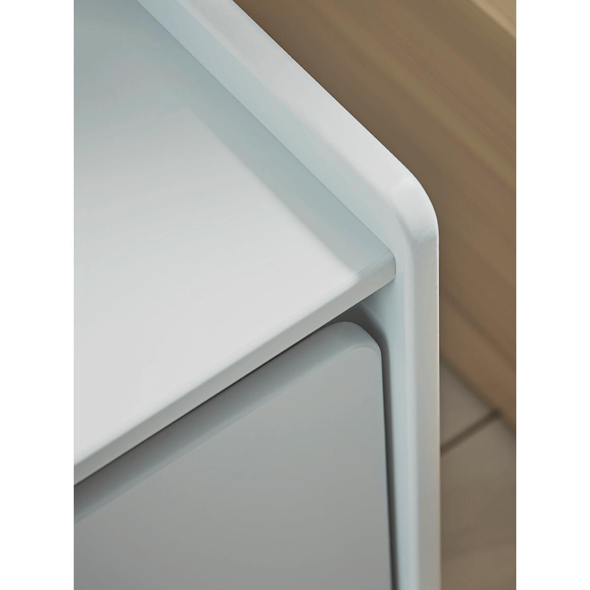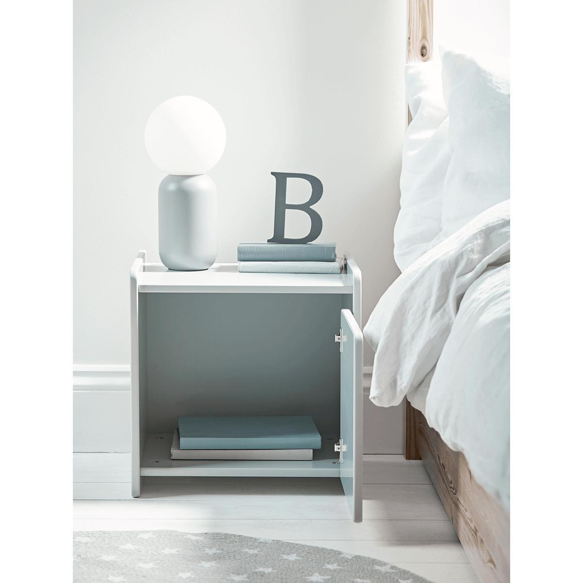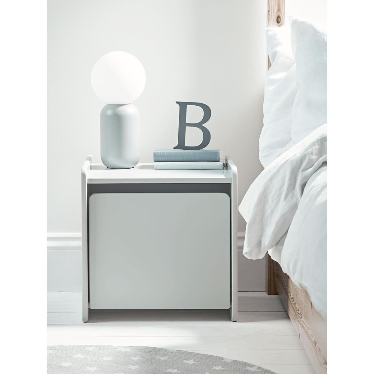 With curved edges, a smooth lacquered finish and plenty of storage space inside and on top, our beautifully simple Cubi Bedside Table in soft grey is the ideal bedside table for the little ones in your life and will slot easily into any interior aesthetic.