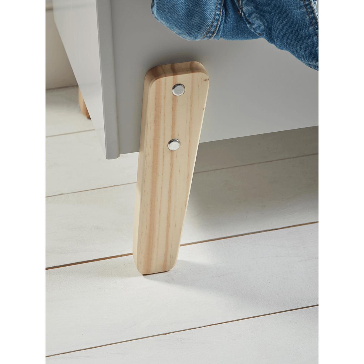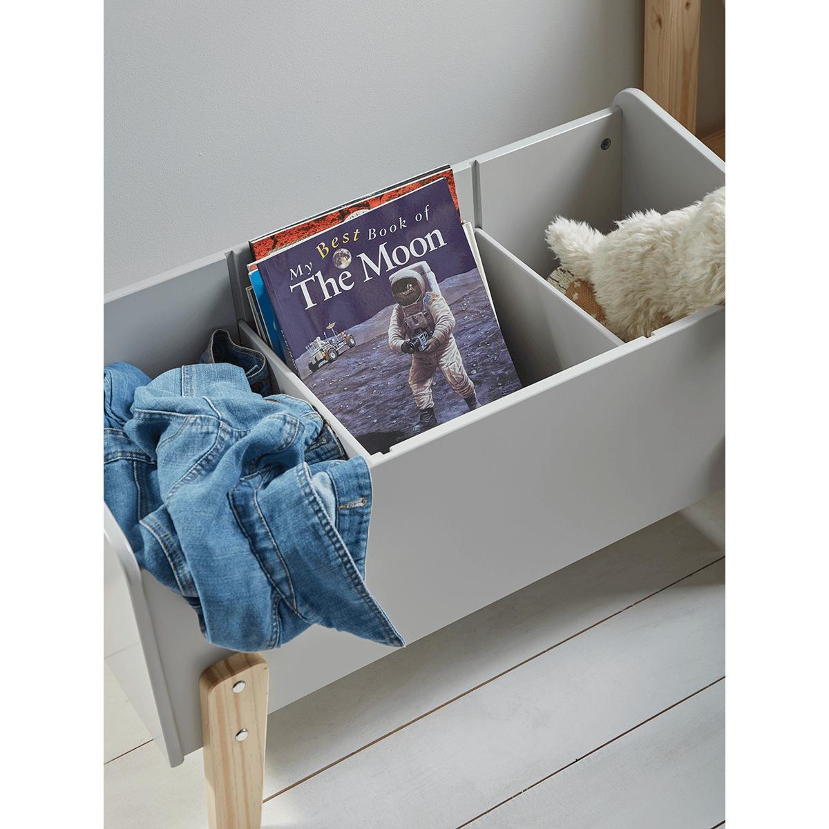 Our Cubi Standing Storage Box with a smooth lacquered finish in soft grey and solid pine feet is the perfect storage solution for the little ones in your life. Choose to slot the two dividers in for a little more order, or take them out if organised chaos is more their style. At least you know it will always look sleek and stylish on the outside!. Our wall colours are. Soot. And. Flaxen.