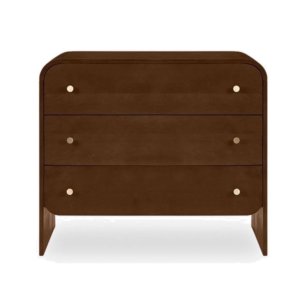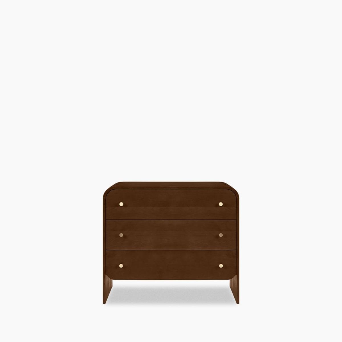 The Cubitt Range is a seamless blend of sculptural design and functional furniture. Incorporating soft curves of the solid mango wood for that clean modernist approach, this spacious chest of drawers with brass handles features three large drawers that are elevated elegantly from the floor. Stained in a walnut wood finish that makes the natural grains of the mango wood pop, combine your dark wood drawers with soft boucle fabrics and cream textured duvet set. View The Cubitt Range