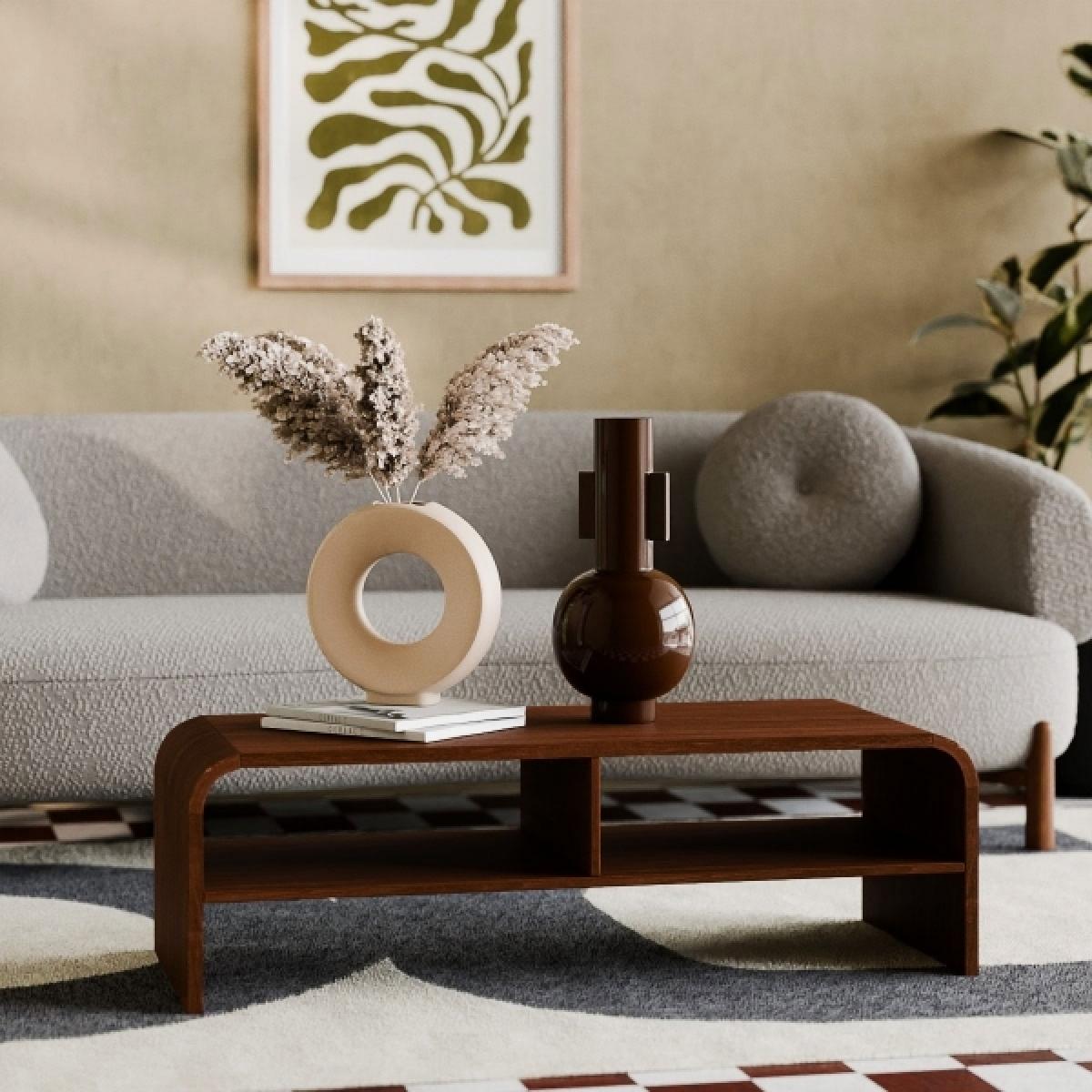 The Cubitt Range is a seamless blend of sculptural design and functional furniture. Incorporating soft curves of the solid mango wood for that clean modernist approach, this coffee table features two alcove shelves neatly positioned underneath, with legs slightly elevated from the floor. Stained in a walnut wood finish that makes the natural grains and knots of the sustainable mango wood pop, combine your k wood coffee table with soft cream boucle fabrics and a cream geometric rug. View The Cubitt Range Material: Mango Wood Additional Features: 2 x Shelves Max. load per shelf: 10kg Assembly: No Assembly Required Care:Wipe clean with a dry cloth Dimensions Total Size: H 35 x W 110 x D 50cm Shelf Size x2:H 17 x W 53 x D 50cm Weight: 16kg Packing Dimensions 44 x 119 x 59cm. Buy your Cubitt Wooden Coffee Table, k Mango Wood from a wide range of Furniture, Tables, Kitchen & Dining Room Tables