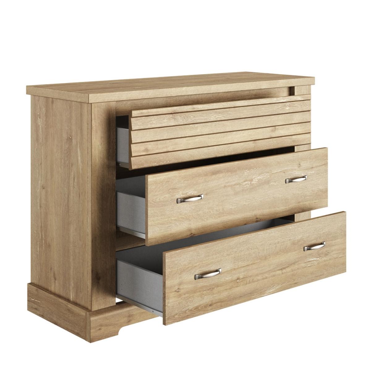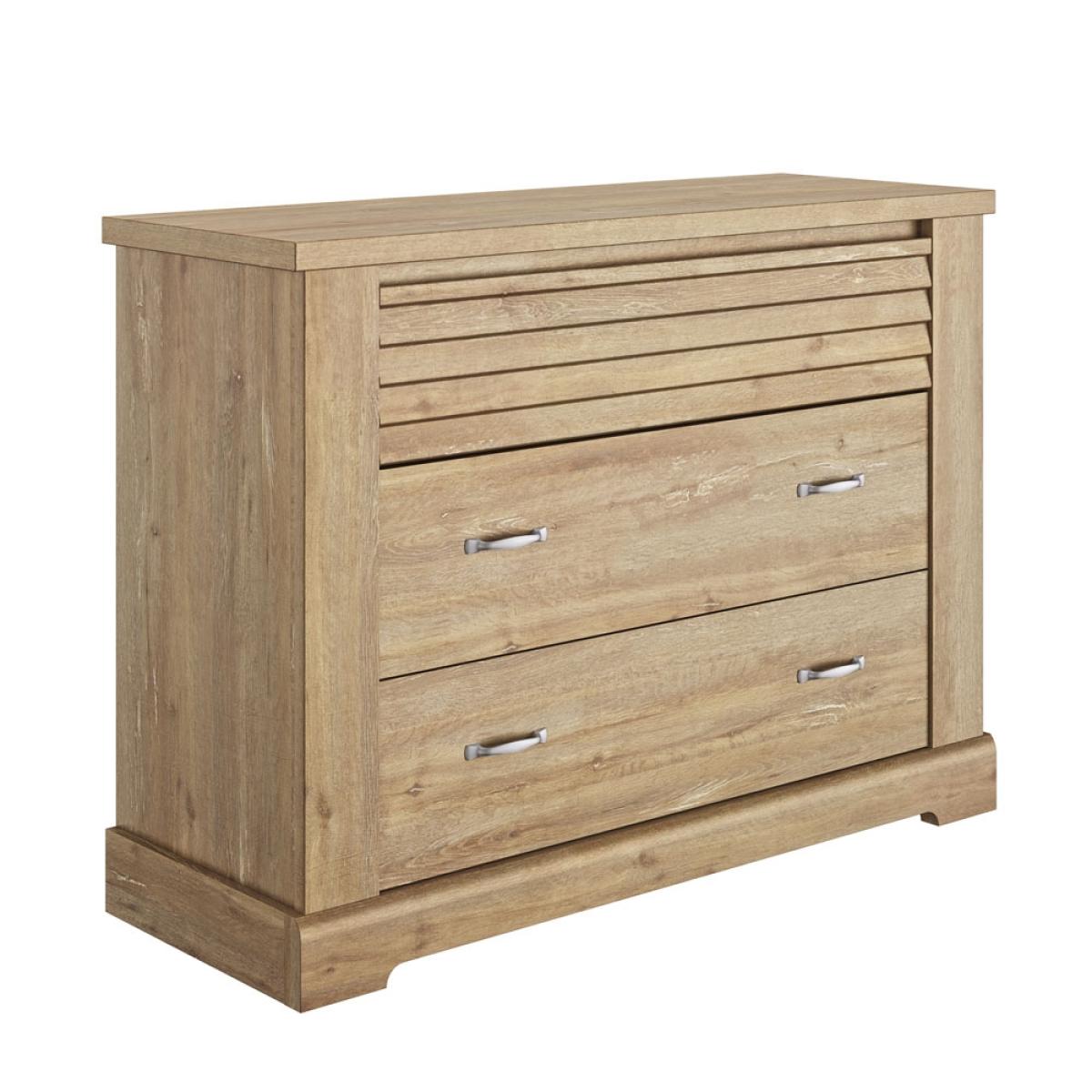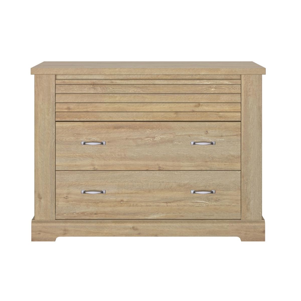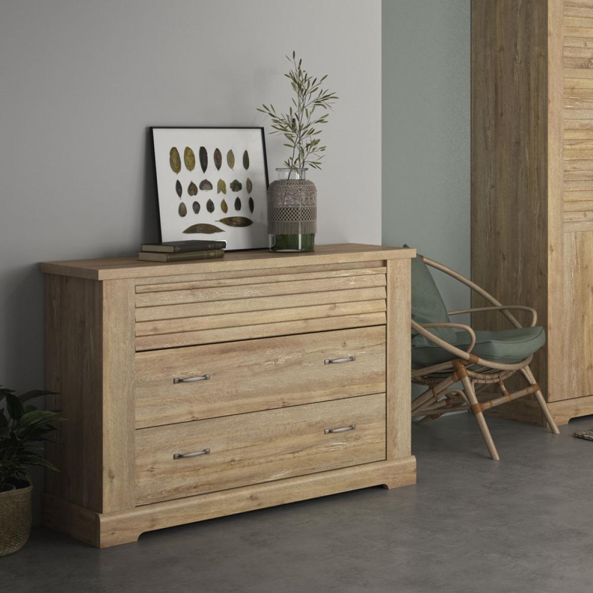 The Camille Louvre Low and Wide Chest of Drawers is part of the gorgeous Cuckooland Camille Bedroom Furniture Range. These really are statement pieces for the Master Bedroom giving a feeling of grandeur inspired by traditional French louvre design and a twist of rustic Parisian charm. Low and Wide, this 3 drawer chest is perfect if your ceiling heights are a bit of an issue. With it’s gentle washed oak finish, brushed metal hardware and three drawers with the top one sporting the Camille louvre detailing, it really is a beauty. Other items in the Cuckooland Camille Bedroom Furniture Range include other chests of drawers, various wardrobe options, bedside tables and of course the bed, so you can create a beautifully cohesive bedroom.