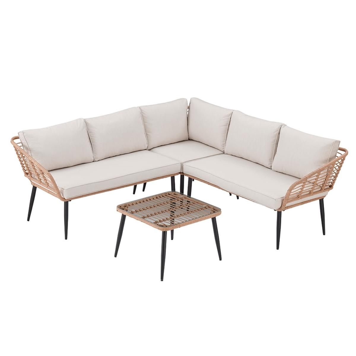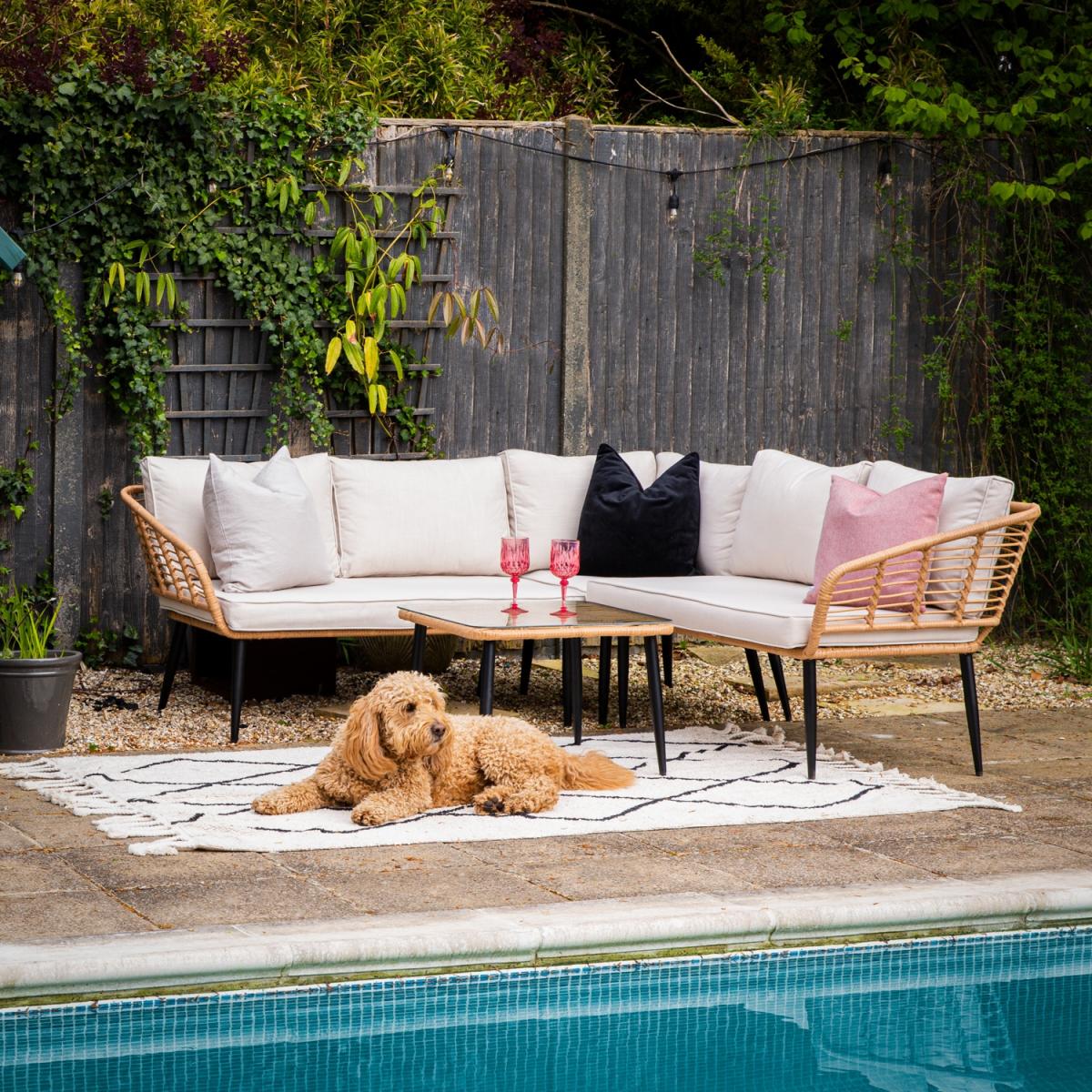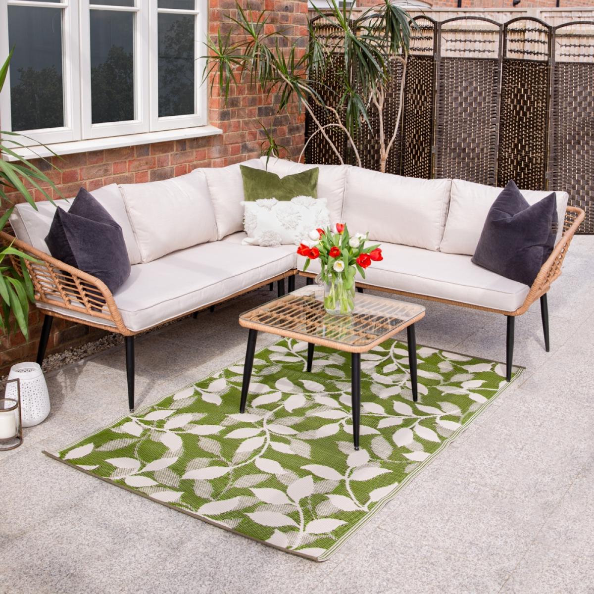 You won't be able to resist a sit down on the sectional Cuckooland Hampstead Garden Rattan Corner Sofa with Coffee Table! You'll create any excuse to pay another visit. Family get-togethers, BBQ parties, coffee catchups, garden gatherings or even just to get a good dose of vitamin D! Whatever the occasion, you'll love settling into the plush showerproof cushions, stretching out and soaking it all in. Giving your garden serious boho vibes - the garden corner sofa has been styled with a natural poly-rattan weave and contrasting tapered black steel legs that are sure to make a statement on your patio. Complete with a coordinating Hampstead coffee table - dress the tempered glass top with candles and lanterns, and you can stay put even after the sun has disappeared!.