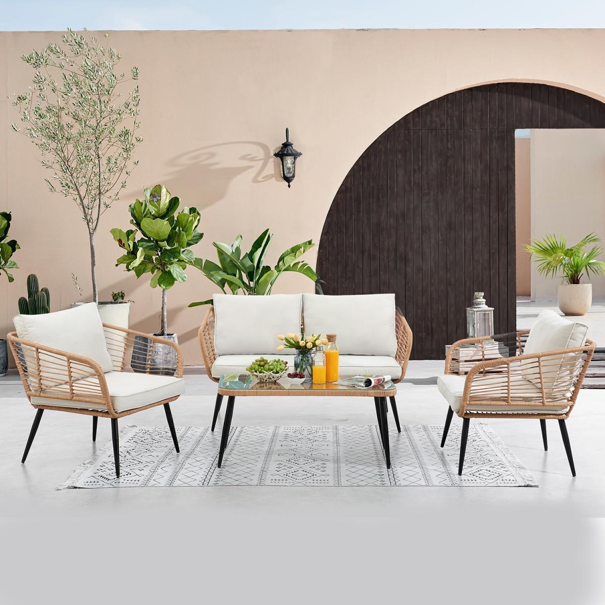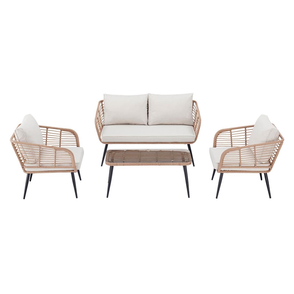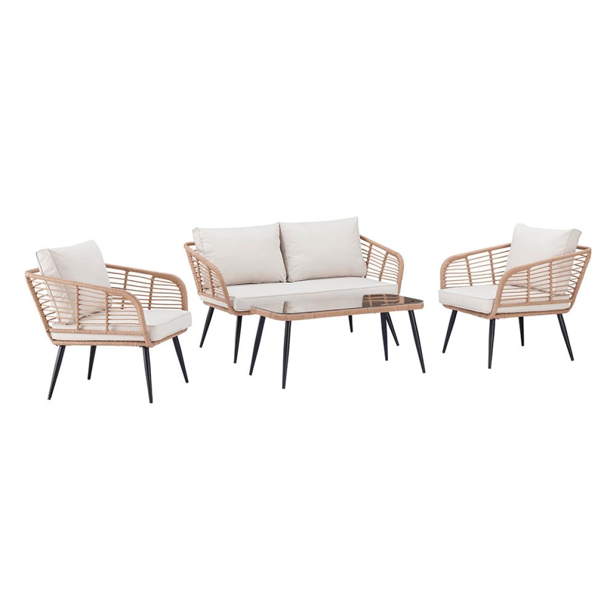 Including a two-seater sofa, two cocooning armchairs and a coordinating coffee table - arrange the Cuckooland Hampstead Garden Rattan Sofa and Armchair Set just how you like! Arrange the showerproof cushions just-so, position your seating out in the sunshine and settle in for the long haul! It's the perfect setting to BBQ parties, coffee catchups and family get-togethers. Or taking the weekend all to yourself, switching your phone off and diving into a good book - just don't forget your sunnies and snacks. Crafted with durable steel frames with a woven poly-rattan weave, bold black tapered legs and a tempered glass table top - you'll be enjoying your Hampstead garden lounge set for many sunny weekends to come!.