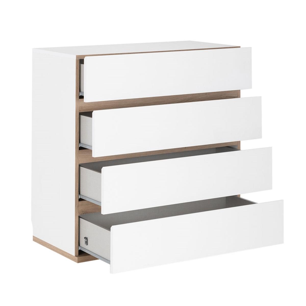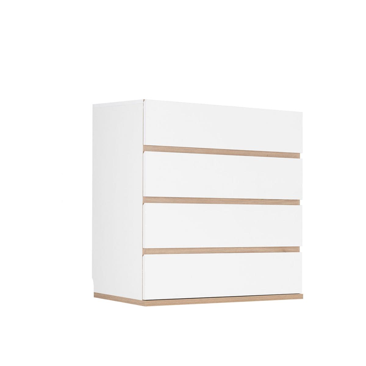 The Cuckooland Malmo Contemporary 4 Drawer Chest has a beautifully sleek no handle Scandi inspired design. This white chest of drawers with rustic oak detailing has four generously sized drawers for your bedroom storage needs. No overhang means that it is perfect for modular use along with other items in the stunning Cuckooland Malmo range, so take a look and create the gorgeous co-ordinated bedroom you have always dreamed of!.