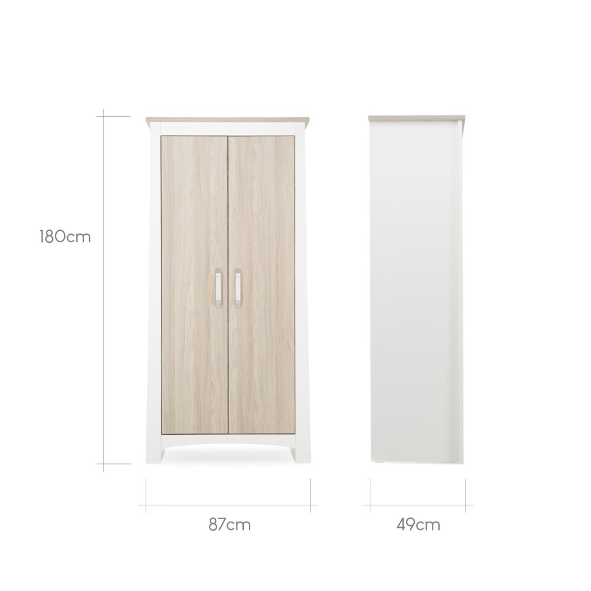 Make sure your little one has a place to sleep and grow by adding this Cuddle Co Ada nursery furniture set into your home. The set comes with a cot bed designed to cater for your baby growing up until they are around 5 years old. The set also helps provide ample space for all your little one's essentials and clothes as you get a changing unit and wardrobe included. With its clean lines and warm ash tones, it's a beautiful addition to any nursery decor, whether you prefer contemporary or traditional style.**Cot Bed:*** 3 adjustable mattress positions* Transforms into a toddler bed* Suitable from ages 0-5* Requires a mattress 140cm x 70cm Designed to cater to your child's needs from infancy to early childhood, the Ada Cot Bed can be used from birth until they turn five, and can be easily converted into a toddler bed when the time comes. Plus, with three adjustable mattress base positions, you can ensure your little one is comfortable and secure during nap times without any disturbance.**Please Note:** When converted into a toddler bed this product is recommended for use by one child aged 18 months to 5 years.**Changing Unit:*** Baby changing top* Removable changing station* 3 spacious drawers* Recommended changing mat is 75cm x 46cm* Changing top suitable for up to 11kg or approx 12months With three roomy drawers, you'll have plenty of space to store nappies, muslin's, and wipes. The brushed metal handles provide a contemporary feel to this timeless piece. Plus, when your child has outgrown the changing top, simply remove it for a versatile standalone chest of drawers that will last for years to come.**Wardrobe:*** 2 doors* 1 shelf* Removable lower hanging rail With two removable hanging rails and an internal shelf, you'll have plenty of room to keep all of your little one's clothes and essentials organised. As your little one grows, simply remove the lower hanging rail to convert the wardrobe into a full-size version that will last for years to come.