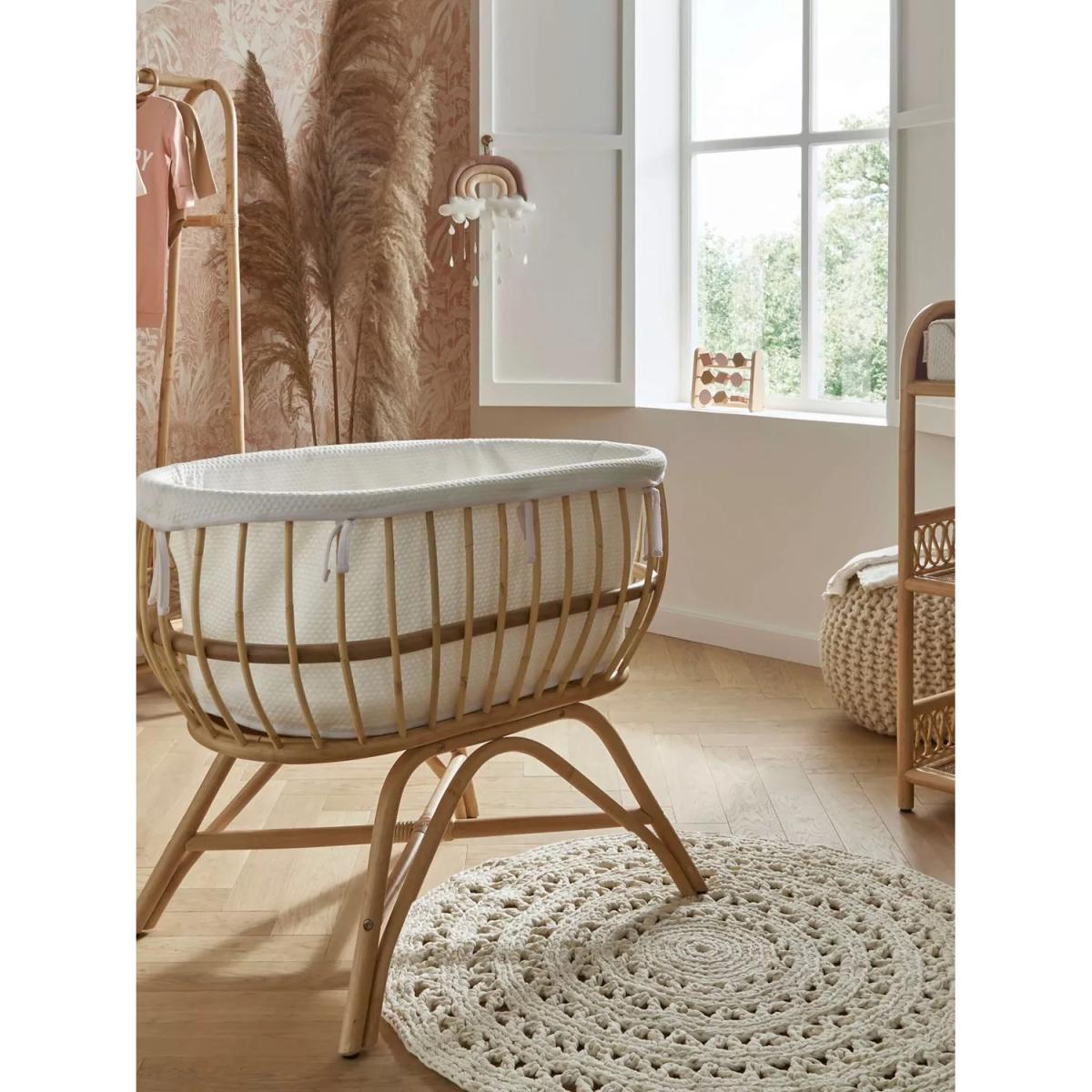 The Aria Changer is a charming piece of handmade rattan nursery furniture that blends traditional techniques with a modern style to create a must-have product for the nursery. It has a changing surface for you to safely place your baby’s changing mat, plus two shelves which are ideal for keeping nappies, wipes and creams within easy reach. The shelves can even be used for storing blankets or any other day-to-day necessities. Key features: Changing surface suitable up to 11kg, approximately 12 months Retaining barriers for safety Two storage shelves Fully certified and accredited testing to BS EN 12221: 2008+A1:2013 Good to know As it's handmade, each unit is unique and the exact size/shape may vary. The natural materials used may change colour and develop character over time. Be aware, a changing mat is not supplied with this unit. Recommended changing mat size is 75 x 46cm.