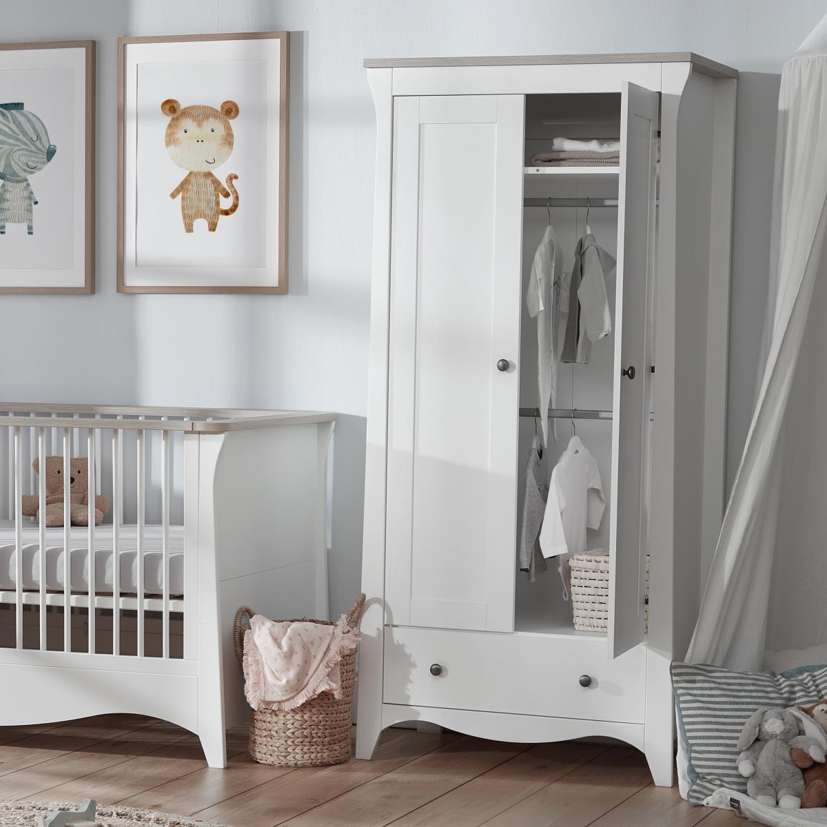 CuddleCo are here to make your nursery a space to store all your little one's bits and bobs. This gorgeous wardrobe is expertly crafted to keep your nursery beautifully organised. Featuring 2 removable hanging rails that can easily convert into a full-size wardrobe, it also features a deep storage drawer and a convenient shelving space - perfect for all your little one's essentials. Rest assured, this wardrobe is thoughtfully designed to endure and provide lasting functionality. Transform your little one's nursery into a modern fairy tale with the Clara furniture collection from Cuddle Co. The collection features classic curvature with a contemporary twist, this set is the perfect blend of function and style. This classic design is sure to bring a touch of elegance to any modern nursery. And with durability in mind, the Clara furniture collection is designed to last, making it a smart investment for your family.