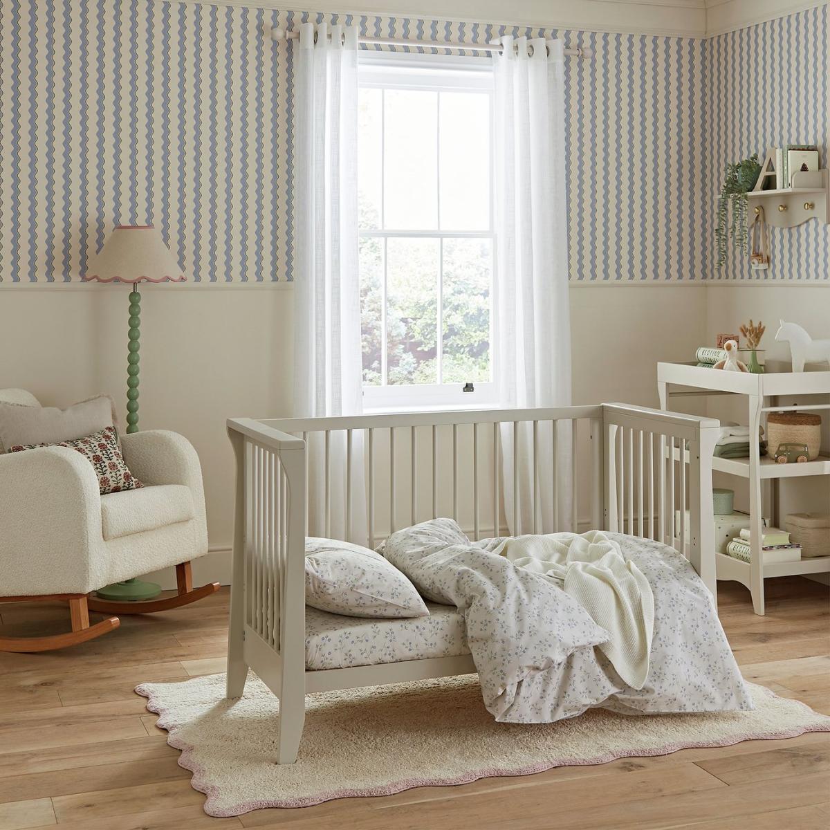 Complete your fairy tale with the Clara piece, including a cot bed, 3 & changer. Classic curvature with a modern contemporary look. The cot bed is suitable from birth to about 5 years, with 3 mattress positions. The Clara converts into a stylish toddler bed. The Clara dresser features 3 spacious drawers and a removable changing top. Clara's double wardrobe successfully organises your nursery with 2 removable hanging rails, a deep storage drawer & a shelf. Space saving 2 piece set ideal for smaller nurseries. The Cot Bed converts to a toddler bed. Part of the Clara collection. 2 piece set, including: cot bed, cot, changing unit,. Cot suitable from birth until baby is able to climb out. Converts to toddler bed. months to 5 years. Made of wood. Cot features Cot L134, W64.8, H85.3cm. Weight 19.5kg. Mattress base adjustable height 33cm, 50cm, 65cm. Mattress not included. Cot bed maximum user weight 25kg. Changer features Weight 12kg. Changer top attached. Changer top detachable. Changer H91, W53.6, D80.6cm. Packaging Comes in 2 boxes. Package Dimensions: Package 1 dimensions: H18.5, W132.5, D82.5cm. Package 1 weight: 19.5kg. Package 2 dimensions: H8.5, W88, D98cm. Package 2 weight: 12kg. General information Self-assembly - 2 people recommended. (includes wall fixing). Manufacturer's 5 year guarantee. If the product is over 60cm high it must be securely attached to the wall to prevent overturning.
