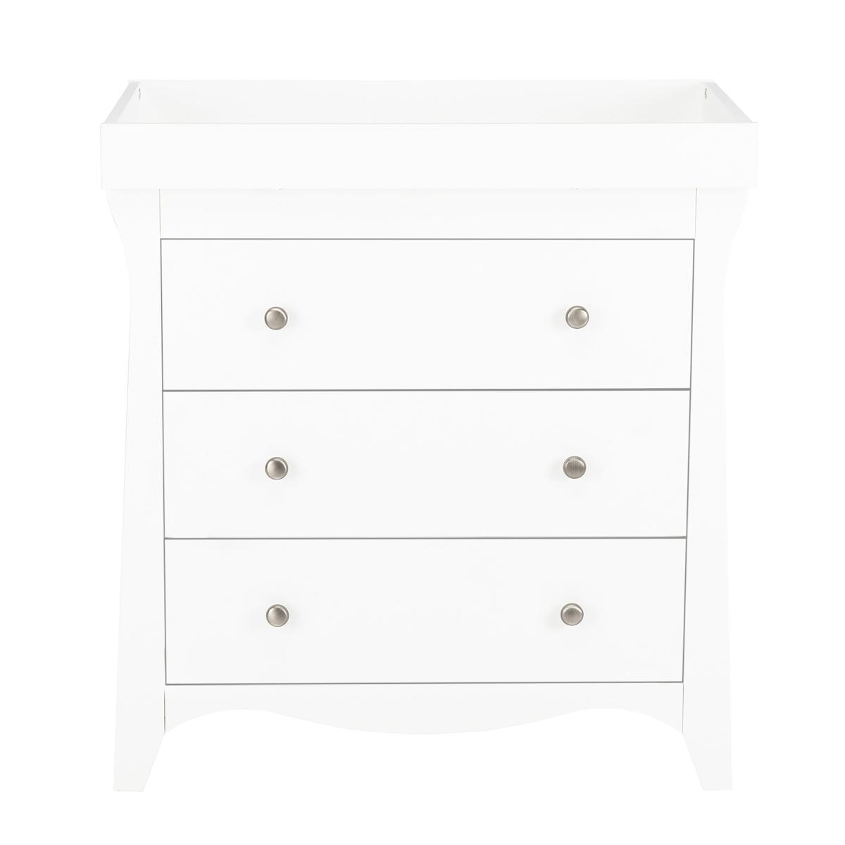 * Baby changing top* Removable changing station* 3 spacious drawers* Designed to last* Full assembly required A place to store all your nappy essentials and space to change your little one, this beautifully designed Clara Drawer Chest and Changing Unit is the perfect combination of style, storage, and function. Featuring 3 spacious drawers, it offers ample space to store all your little one's clothes, toys and accessories. The removable changing station is an added bonus, providing a practical solution for those early diaper changes. Choose from a chic white or classic driftwood ash detailing to match your nursery decor. Rest assured, this changing unit is thoughtfully designed to endure and provide lasting functionality. Transform your little one's nursery into a modern fairy tale with the Clara furniture collection from Cuddle Co. The collection features classic curvature with a contemporary twist, this set is the perfect blend of function and style. This classic design is sure to bring a touch of elegance to any modern nursery. And with durability in mind, the Clara furniture collection is designed to last, making it a smart investment for your family.