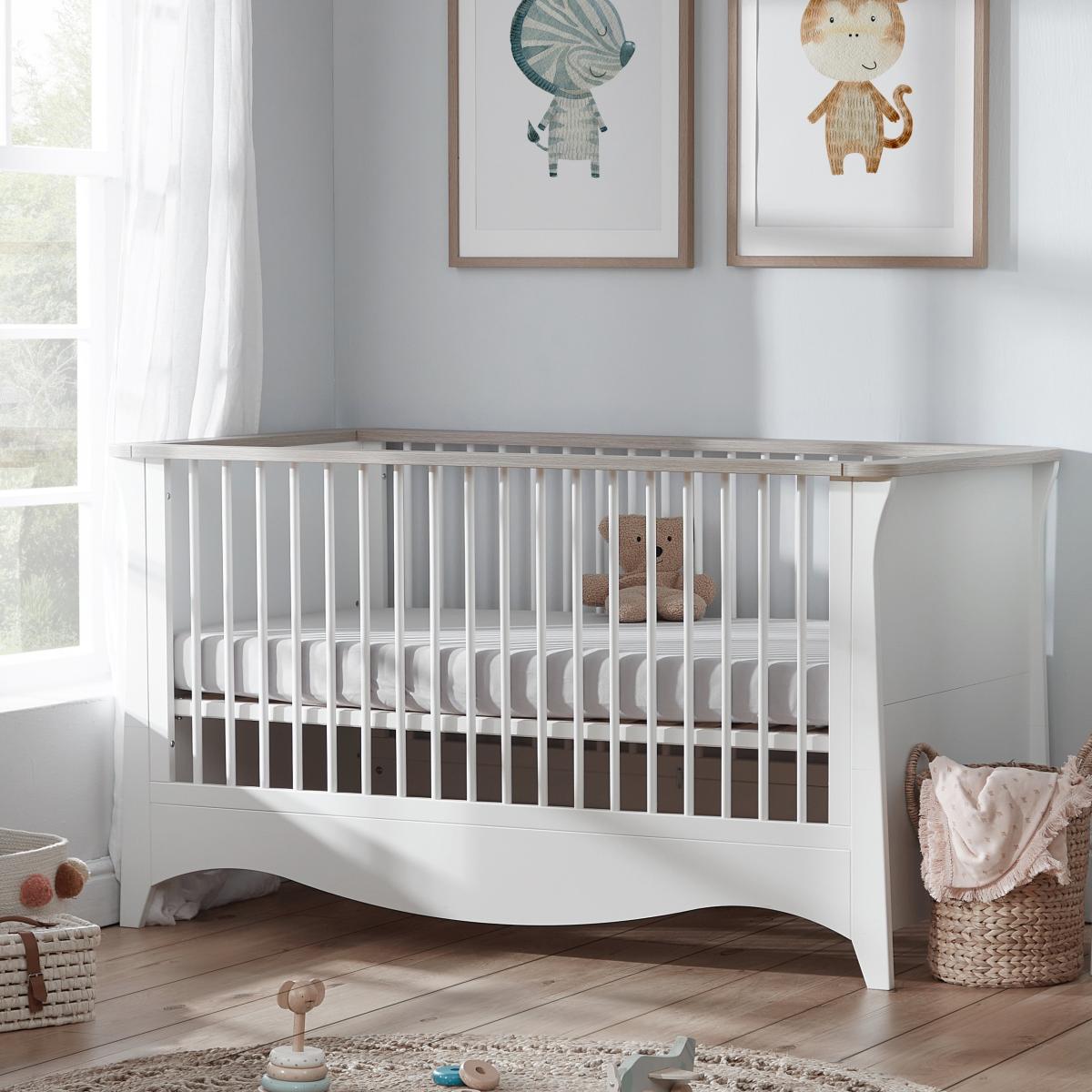 With this cot bed, your little one will have a place to sleep and dream to their heart's content for years to come! The Clara full size cot bed, suitable for newborns up to about 5 years old, is designed with 3 adjustable mattress positions for added convenience. And as your little one grows, the Clara easily converts into a modern and stylish toddler bed for years of enjoyment. Transform your little one's nursery into a modern fairy tale with the Clara furniture collection from Cuddle Co. The collection features classic curvature with a contemporary twist, this set is the perfect blend of function and style. This classic design is sure to bring a touch of elegance to any modern nursery. And with durability in mind, the Clara furniture collection is designed to last, making it a smart investment for your family.
