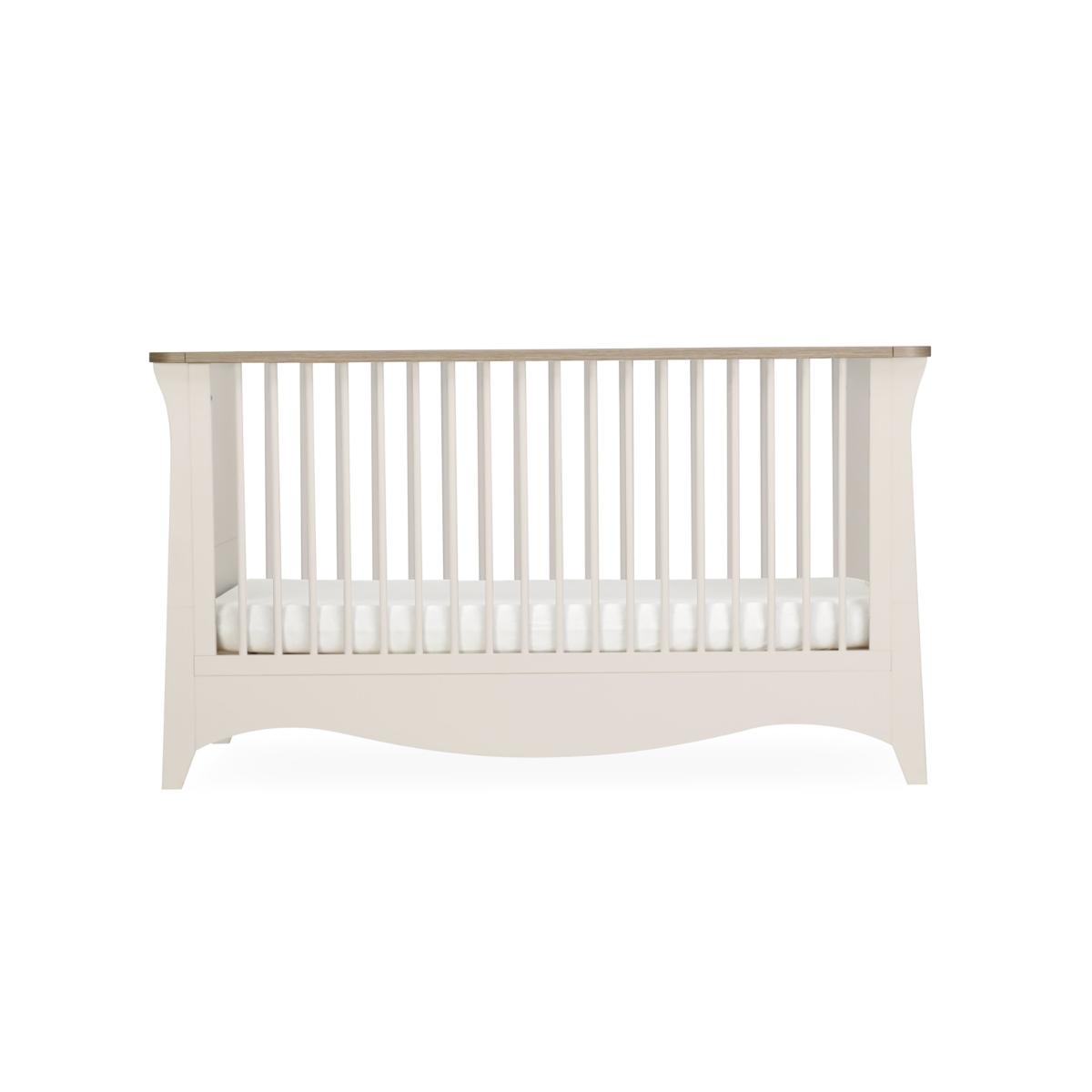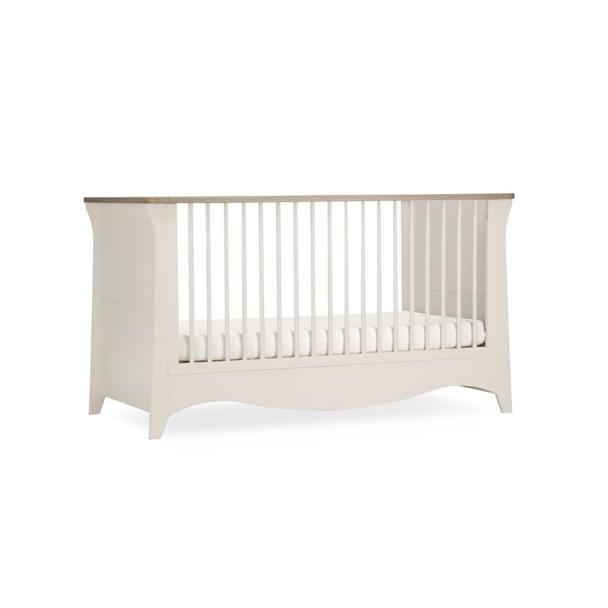* Classic design* 3 adjustable mattress positions* Transforms into a toddler bed* Suitable until about the age of 5* Full assembly required With this cot bed, your little one will have a place to sleep and dream to their heart's content for years to come! The Clara full size cot bed, suitable for newborns up to about 5 years old, is designed with 3 adjustable mattress positions for added convenience. And as your little one grows, the Clara easily converts into a modern and stylish toddler bed for years of enjoyment. Transform your little one's nursery into a modern fairy tale with the Clara furniture collection from Cuddle Co. The collection features classic curvature with a contemporary twist, this set is the perfect blend of function and style. This classic design is sure to bring a touch of elegance to any modern nursery. And with durability in mind, the Clara furniture collection is designed to last, making it a smart investment for your family.