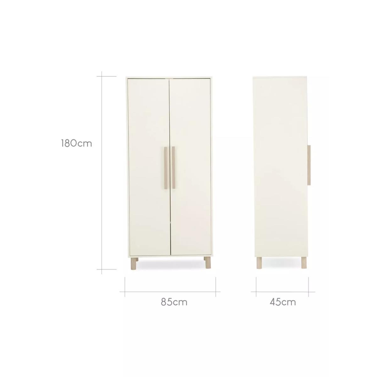 The Harper Wardrobe is a must-have for any modern nursery. Built with clean lines and featuring a neutral colour palette, this piece adds style and practicality to your contemporary nursery set. Inside, this wardrobe has plenty of storage space with two hanging rails perfect for neatly storing your baby’s clothes, and a spacious shelf at the bottom for shoes. Once your child grows and starts to wear larger clothing, the hanging rails can easily be removed and adjusted to operate as a full wardrobe.