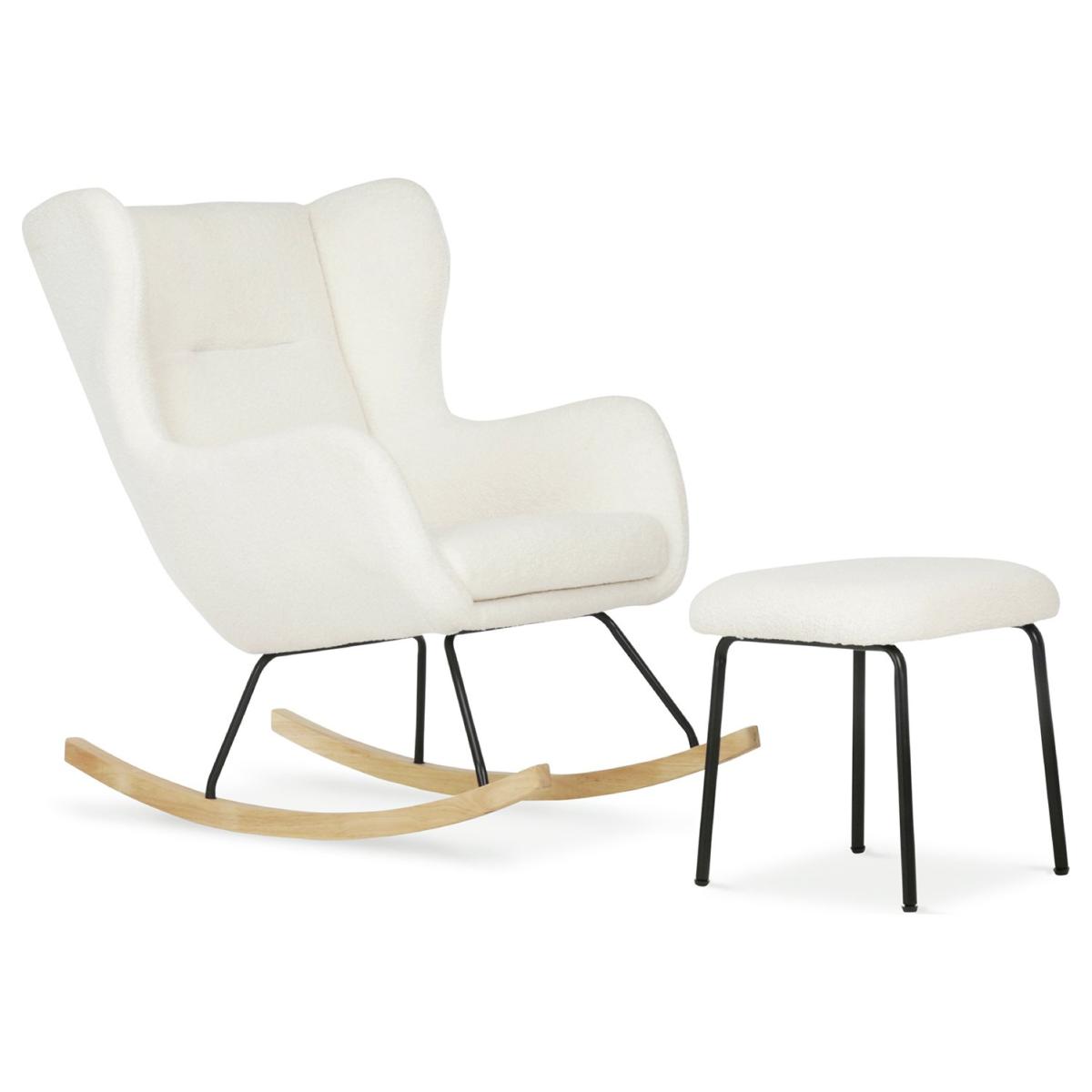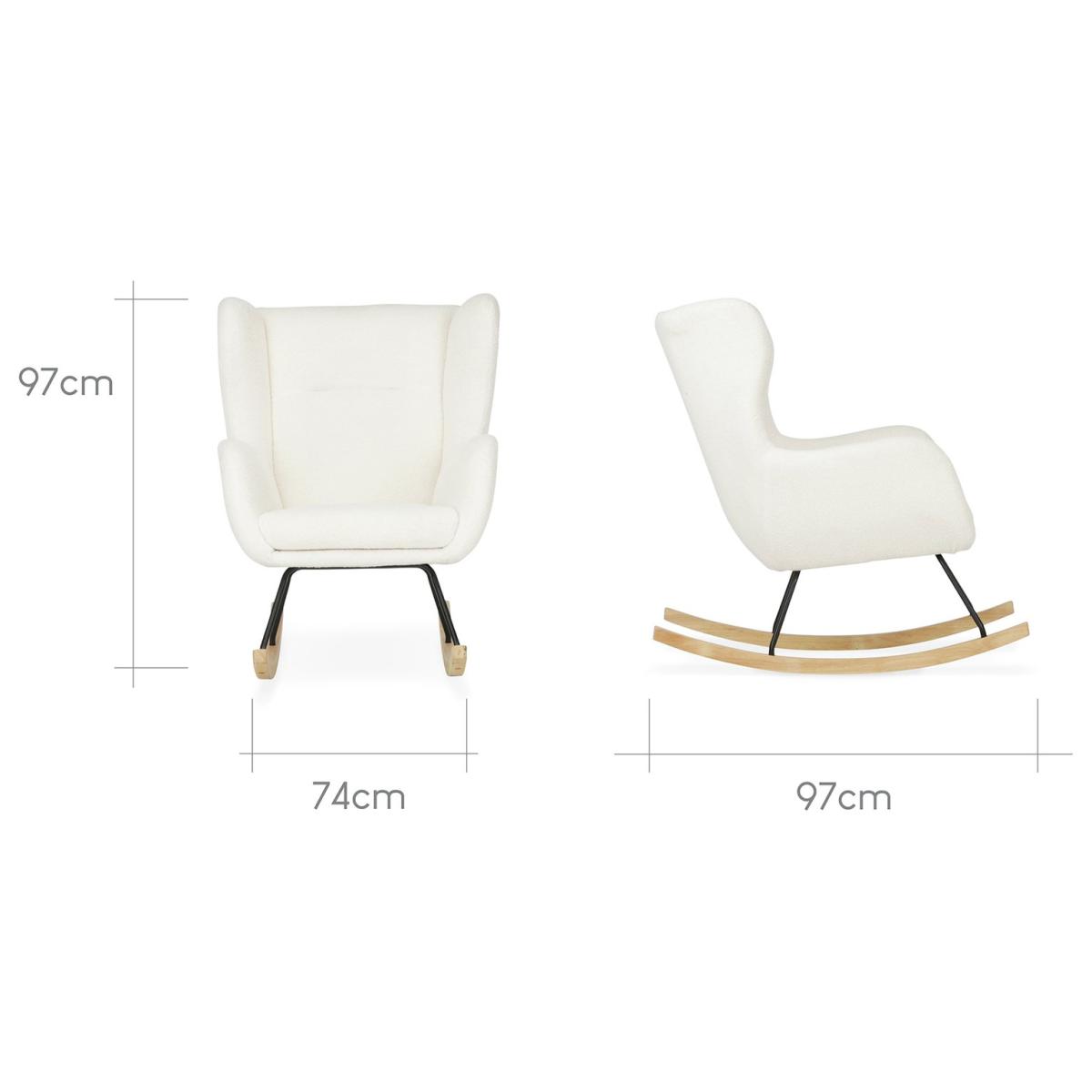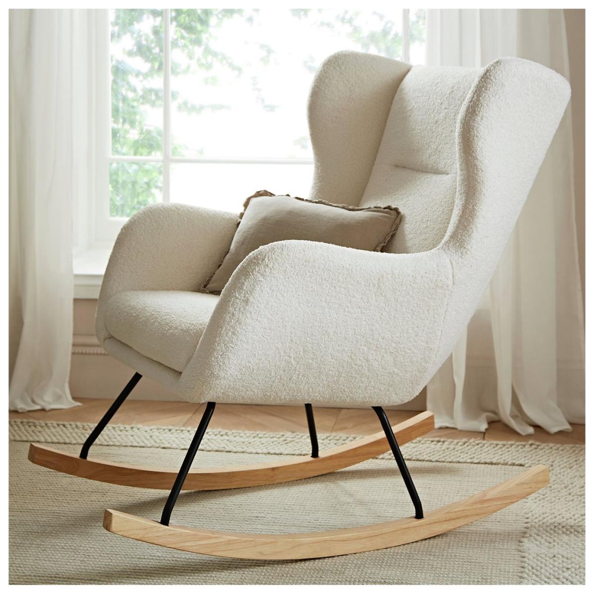 Add style and functionality to your little one's nursery room with our Marley Nursing Chair & Stool. Featuring a light beige colour and contemporary design, this rocking chair is the perfect essential for your modern nursery room with the textured boucle finish and light wood rockers. Nursing Chair complete with matching footstool. Material: polyester. 1 chairs. Self-assembly 1 person recommended. Dimensions: Size of each chair: H97, W74, D97cm. Seat height 97cm. Maximum user weight per chair30kg. Weight 13kg. Package Dimensions: Package 1 dimensions: H77, W75.5, D79cm. Package 1 weight: 16.38kg. General information: Manufacturer's 2 year guarantee.