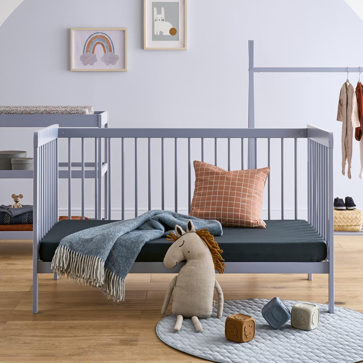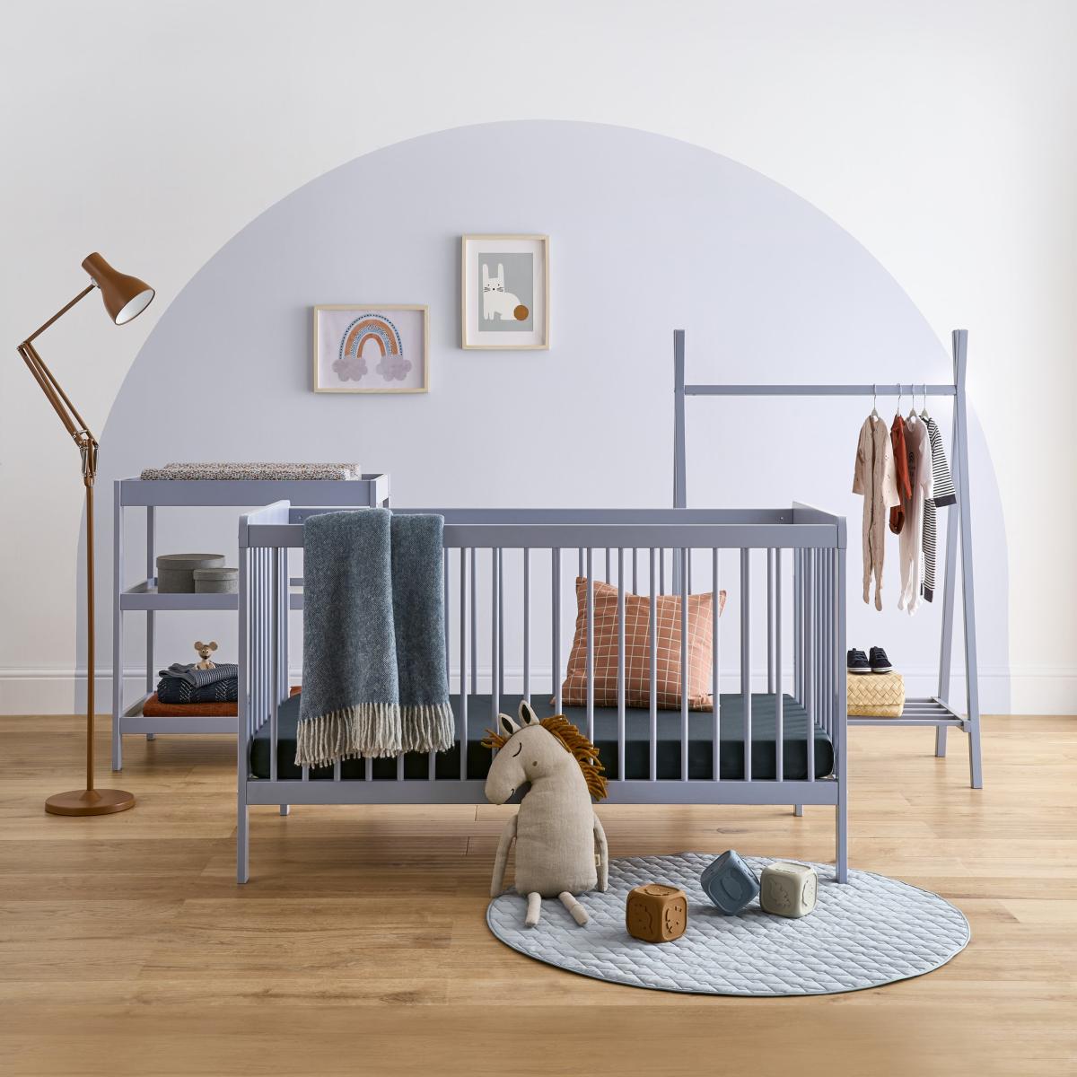 I love the CuddleCo Nola 3 Piece Nursery Furniture Set in blue for its clean, contemporary look that works well in modern or minimalist interiors. Its soft blue tone adds calmness and can be easily paired with neutral or patterned textiles for a personalised touch. The simple design makes it versatile, fitting seamlessly into both small and larger nurseries. For practical styling, consider adding some textured cushions and blankets to bring warmth, while a lightweight curtain or blind can soften the space without overpowering the colour scheme. The open design of the crib and the straightforward lines make it easy to keep the nursery looking neat and inviting, making it a solid choice for a stylish yet functional space.