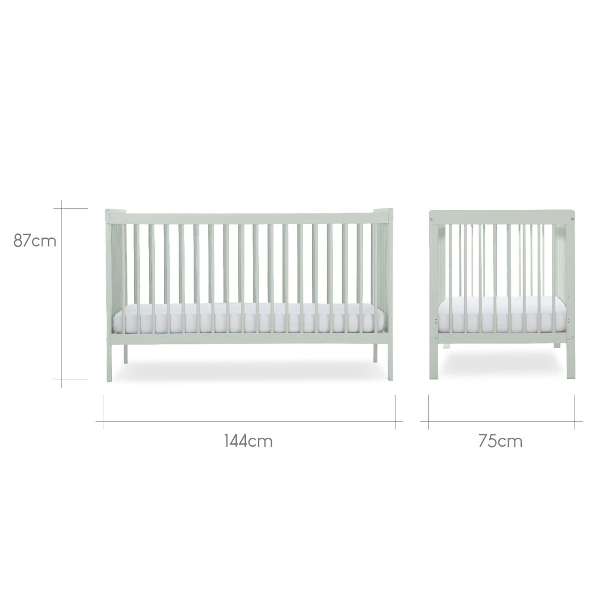 When your little one needs to rest and dream of adventures, this cot bed will give them the perfect place to rest their head. The Nola Cot Bed is a versatile piece that offers a cosy sleeping space for your little one from birth until approximately 5 years old. The pink cot bed features 3 mattress base positions, allowing you to easily adjust the height as your baby grows. Once your little one is ready for a big-kid bed, the Nola Cot Bed can be effortlessly converted into a stylish toddler bed, making it a long-lasting and practical addition to your nursery. The stunning Nola furniture collection by Cuddle Co is available in three irresistible hues - Sage, Blush Pink and Flint Blue. The Flint Blue collection boasts a contemporary design and a bold splash of colour, making it the perfect choice for even the tiniest nurseries. If you're looking to brighten up your baby's room, the Nola collection in Blush Pink is a wonderful option. The Sage Green collection offers a soothing and calming colour that helps to create a serene sleep environment for your baby. With its minimalist design, the Nola collection is an excellent fit for modern nurseries. Please Note: When converted into a toddler bed this product is recommended for use by one child aged 18 months to 5 years.