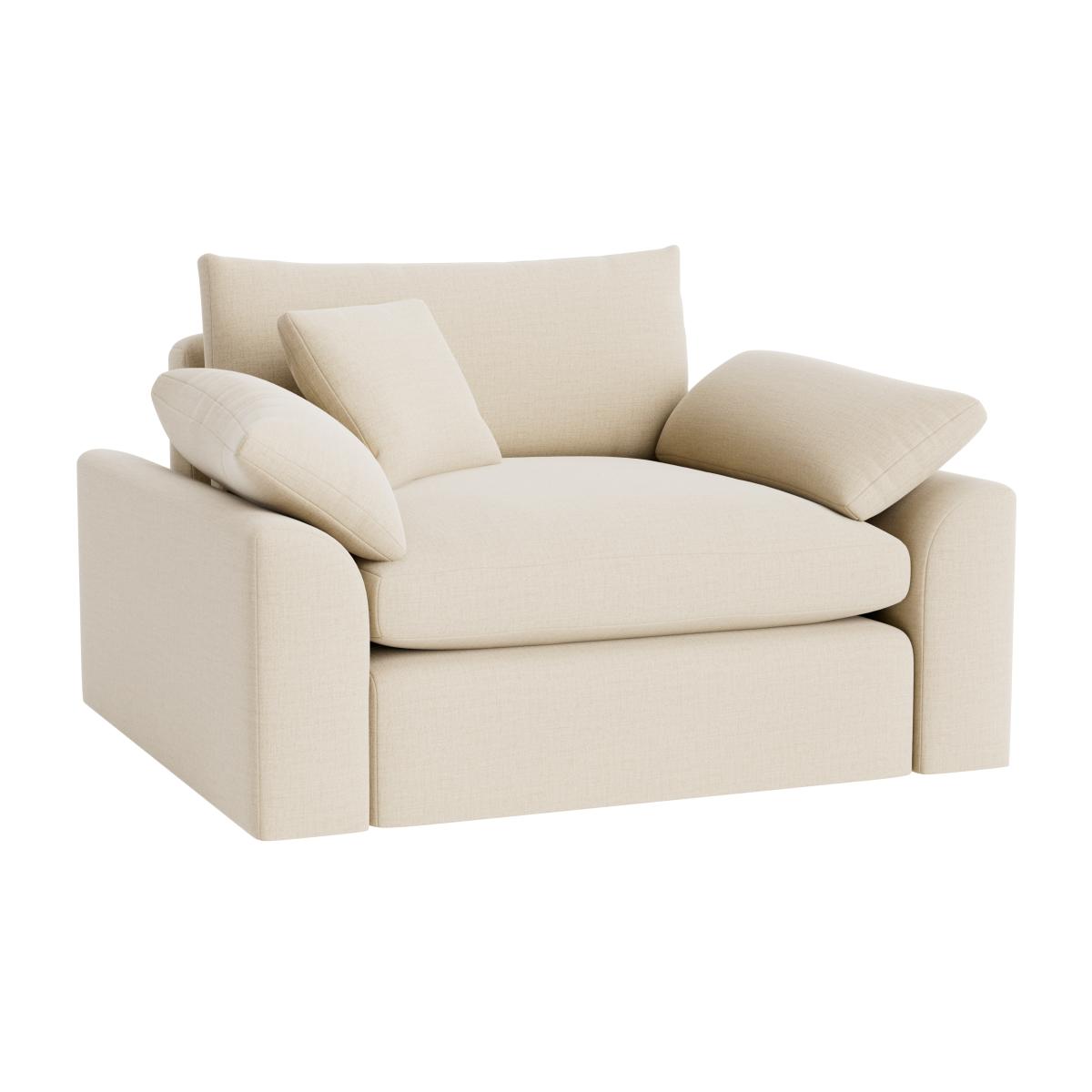 I love the cuddlemuffin love seat for its compact size and inviting design, making it perfect for smaller spaces or as a cosy secondary seating option. Its clean, neutral tone works well in modern, Scandi, or minimal interiors, adding a soft, understated touch. Practical styling tips include pairing it with textured cushions or throws in contrasting colours or patterns to introduce visual interest. It also works well teamed with a statement rug or alongside a simple coffee table to create an inviting, laid-back vibe. Its low-maintenance appearance makes it a versatile piece, ideal for both relaxed family rooms or stylish city flats.