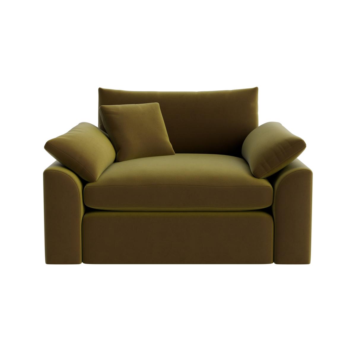 I love the cuddlemuffin as a versatile addition to both cosy living rooms and more contemporary spaces. Its compact size makes it perfect for smaller rooms or as a secondary seat, while the deep, cushioned design offers real comfort. The earthy green hue lends itself well to natural, neutral, or boho interiors; it pairs brilliantly with textured fabrics like linen or woven throws and contrasting cushions for a layered feel. For styling tips, consider adding a soft throw or some patterned cushions to give it personality, and place it near a statement coffee table or beside a window to maximise its inviting appeal. It’s a functional piece that feels relaxed and welcoming, ideal for creating a lived-in, comfortable vibe.