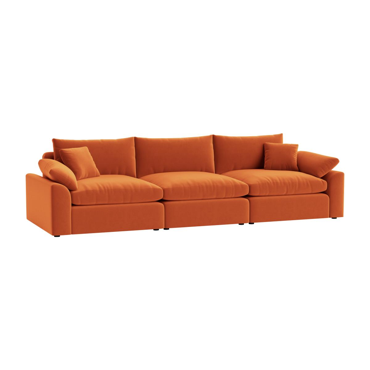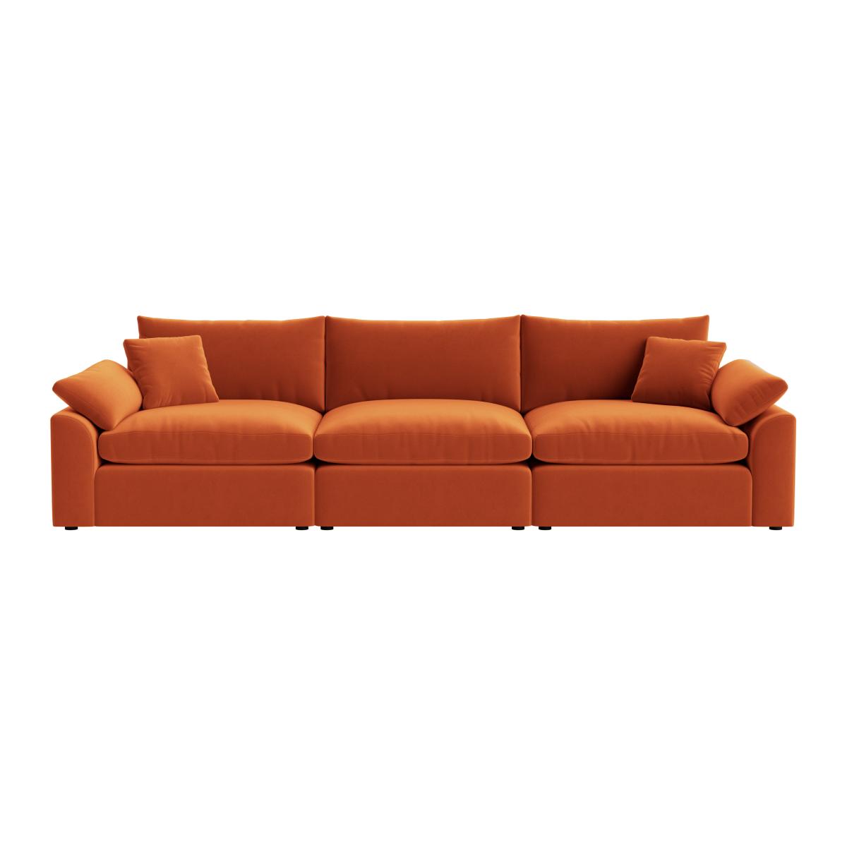 I love this sofa for its versatile and inviting design, perfect for both contemporary and more traditional interiors. Its modular format means you can configure it to fit different room sizes and layouts, making it especially practical for larger family spaces or open-plan living areas. The cosy fabric and generous cushions encourage lounging, while the bold colour works well as a statement piece. Styling tips include pairing it with neutral or complementary throw cushions and soft textured rugs to create a layered, welcoming look. It also works well with a mix of modern and vintage accessories, allowing you to personalise your space effortlessly.