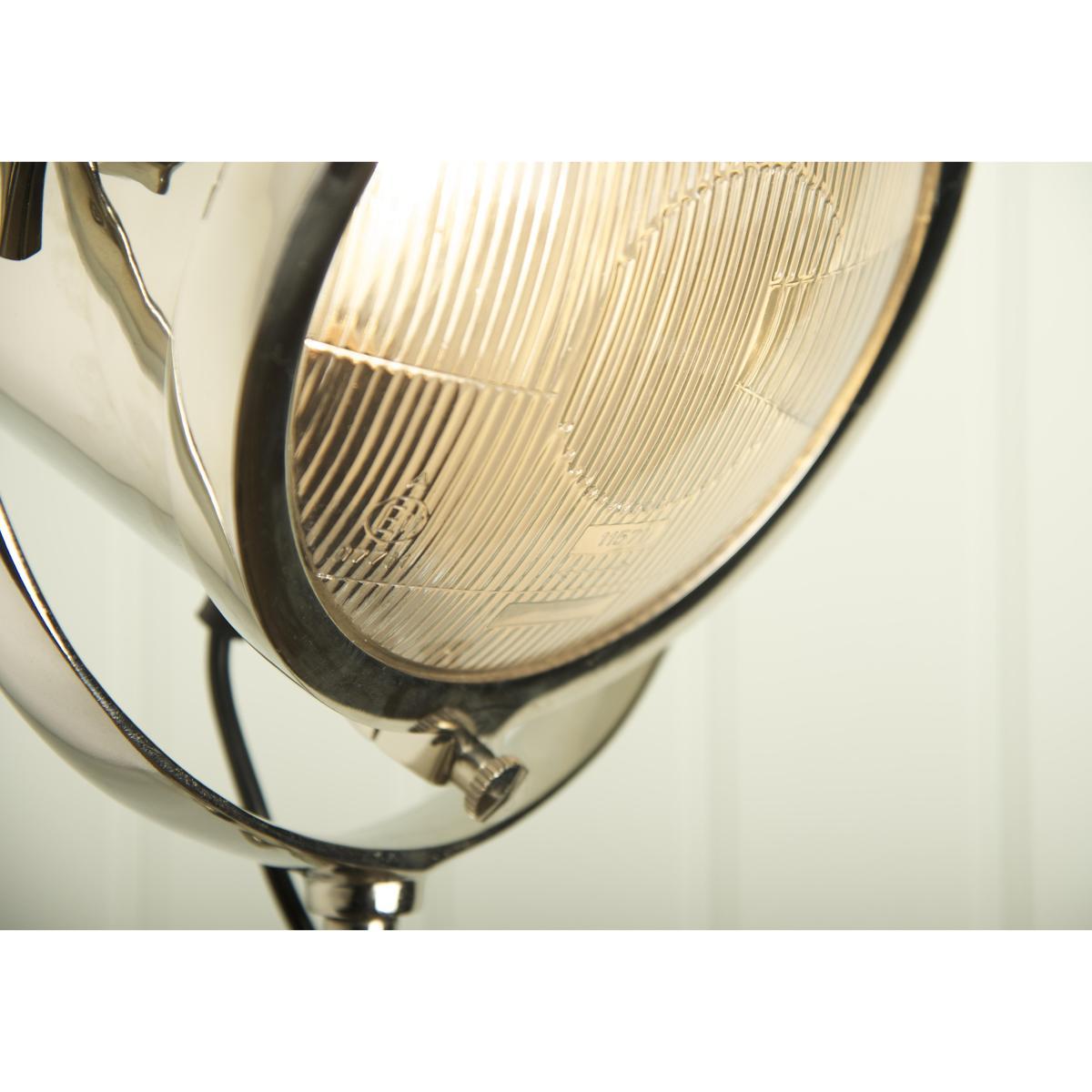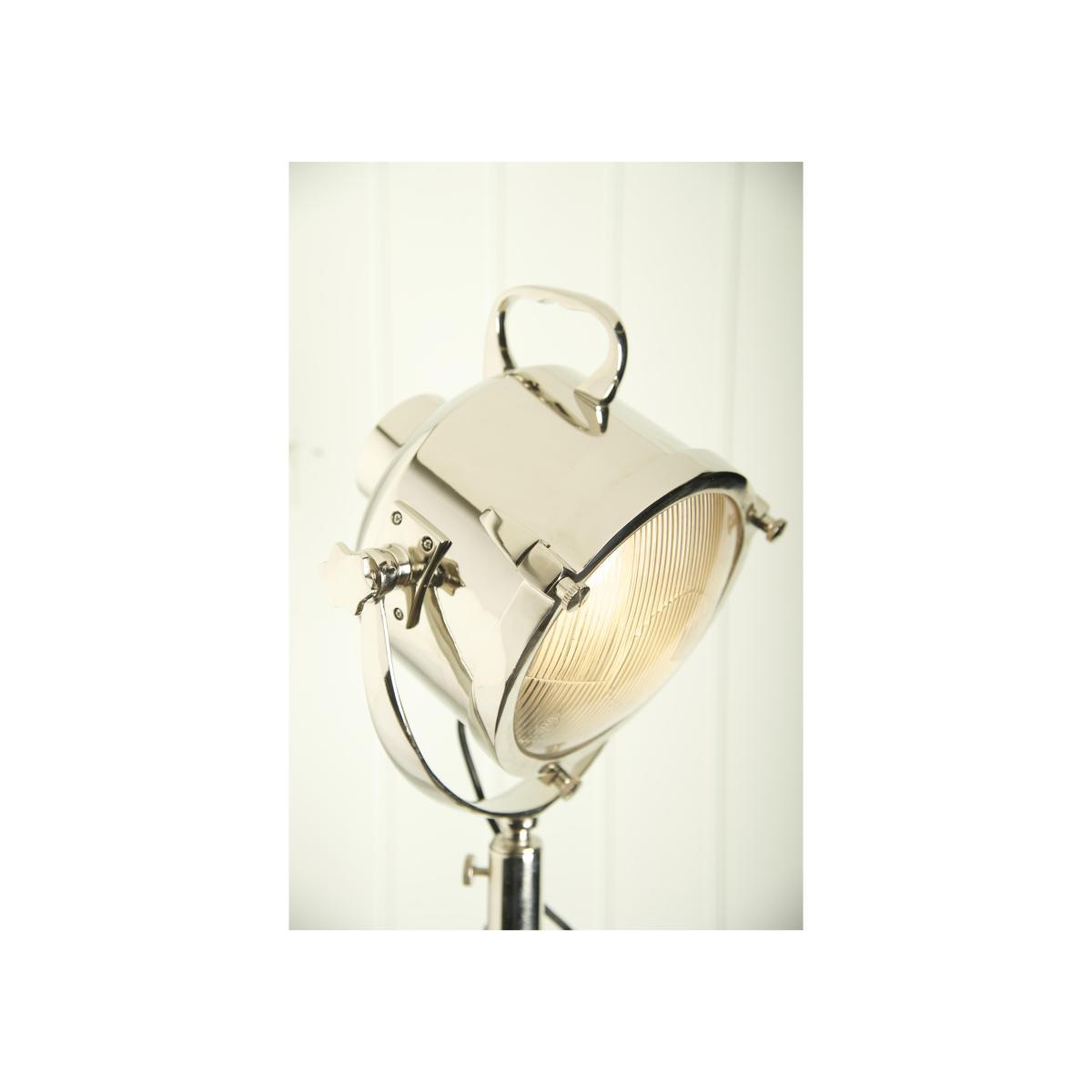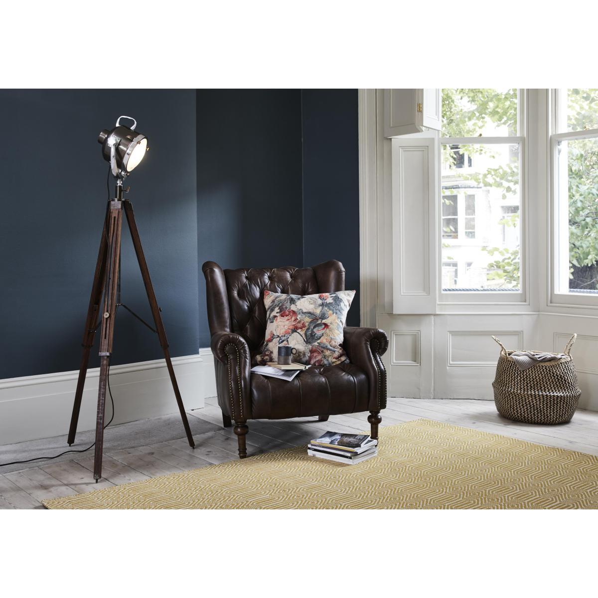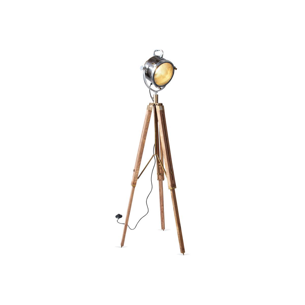 Bring drama to your living space with the unique Spotlight Floor Lamp. Producing a lovely ambient light, the headlamp-style spotlight has a polished aluminium surround and is supported by a brass-accented, real wood tripod base, made from rustic and richly-grained chestnut-coloured Sheesham wood. Choose hand-painted black or natural wood tripod base. Headlamp-style floor lamp is stylish and dramatic. Real wood tripod base with headlamp spotlight. Base made from rich chestnut-coloured Sheesham wood. Choose hand-painted black or natural wood tripod base. Beautifully finished with brass and aluminium accents. E27 bulb, 40 watt or CFL bulb, 25 watt (not included). Unique designer spotlight for modern or traditional interiors. Dimensions. Headlight Diameter: 22cm (7 inches). Height: 144cm adjustable (56 inches).