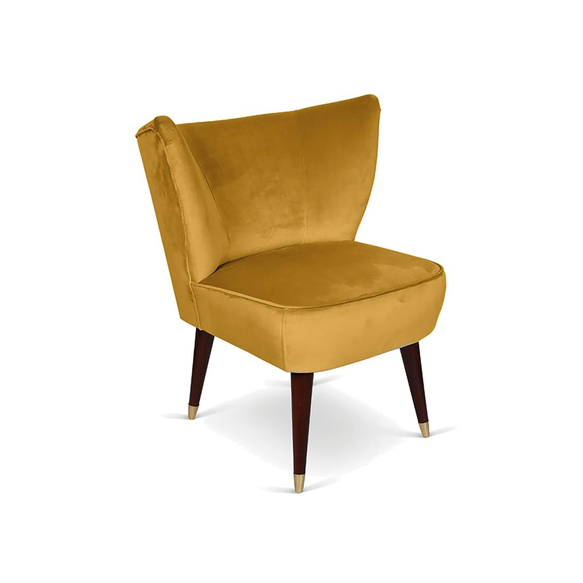 I love this armchair for its rich velvet texture and warm, inviting colour, making it a versatile piece that can elevate both contemporary and traditional interiors. It works particularly well in cosy reading corners, bedrooms, or living rooms where it can serve as a statement piece without overwhelming the space. When styling, consider pairing it with layered textiles like soft throws or cushions to enhance its plush appeal. For colour coordination, earthy tones or contrasting jewel hues will create a sophisticated look. Practical tip: its tapered legs allow for easy movement, so it’s perfect for flexible seating arrangements or small spaces where you want to add personality without bulk.
