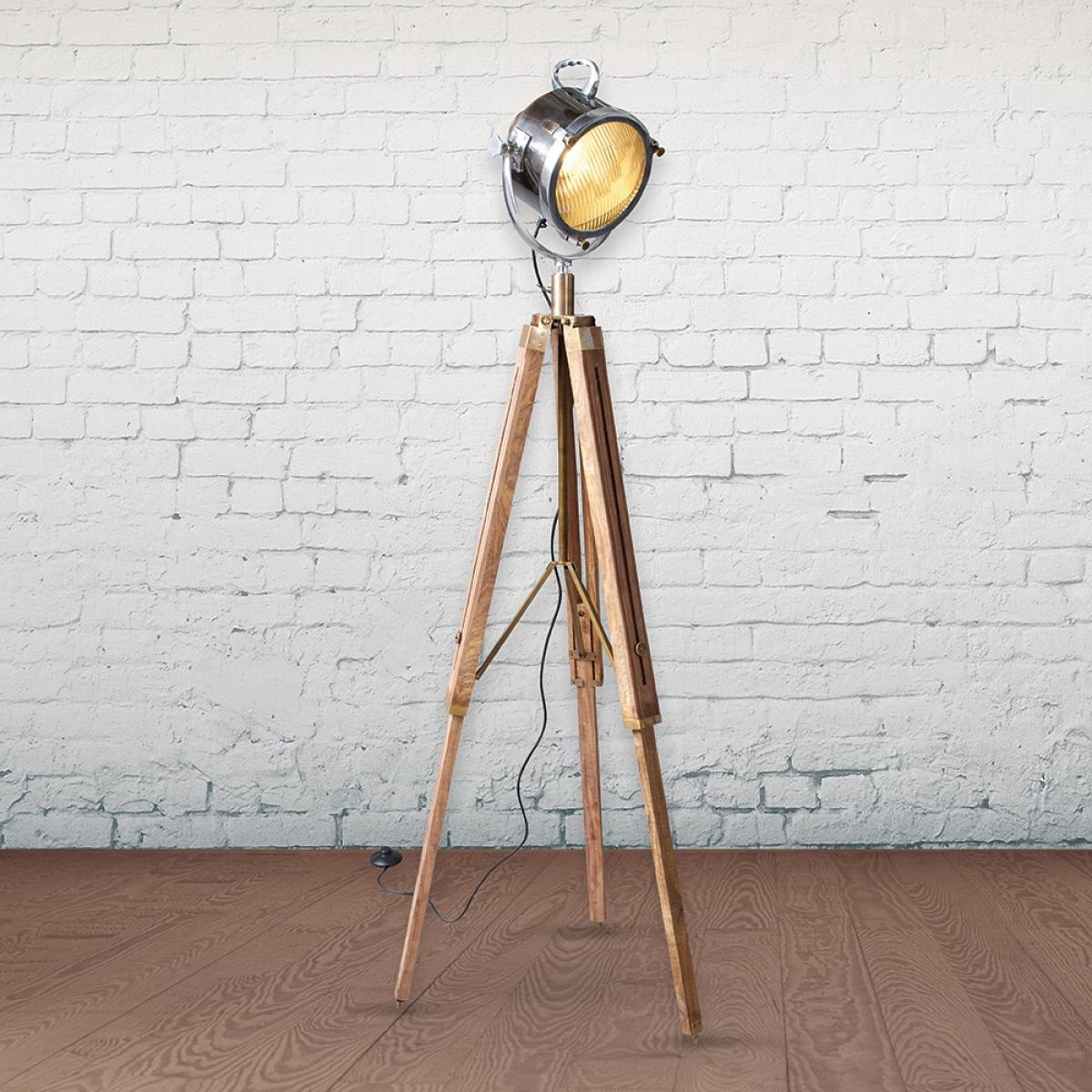Culinary Concepts Wooden Industrial Tripod Floor Lamp