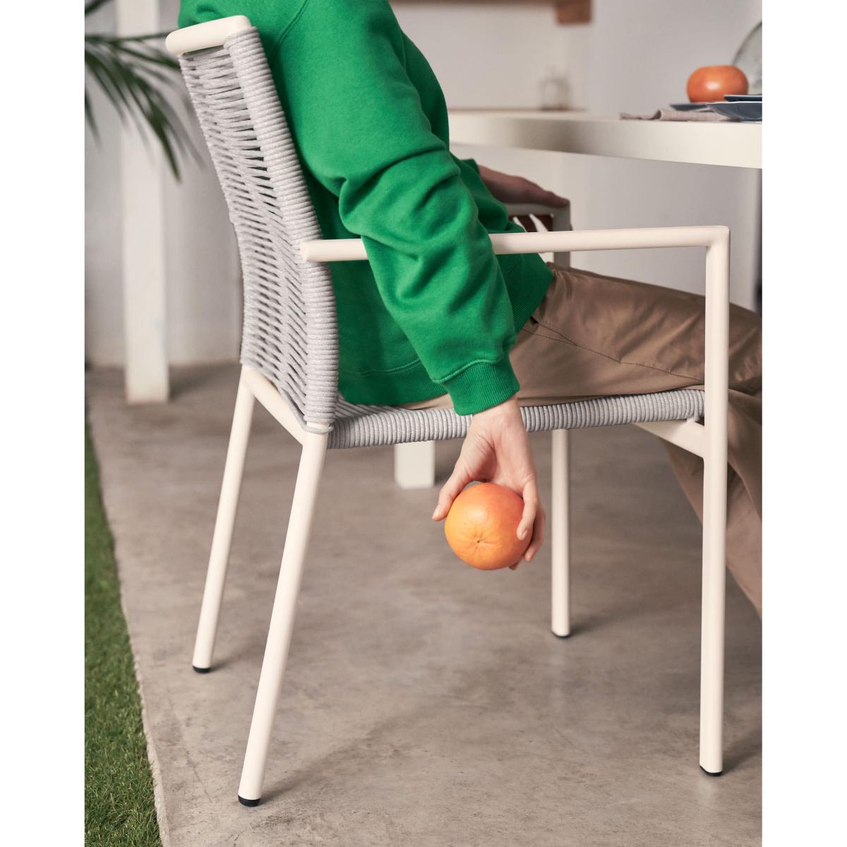 I love this outdoor chair for its clean, contemporary look and practicality. The all-white finish makes it a versatile choice that works well in modern, minimalist, or coastal-inspired garden spaces. Its aluminium frame ensures durability and lightweight movement, while the stylish cord detailing adds a touch of texture without cluttering the visual. For styling, consider pairing it with a mix of neutral cushions or colourful throws to add comfort and personality. It also stacks easily, making it ideal for compact storage during colder months or when hosting larger gatherings. Overall, it’s a sleek and functional piece that elevates any outdoor setting with minimal fuss.
