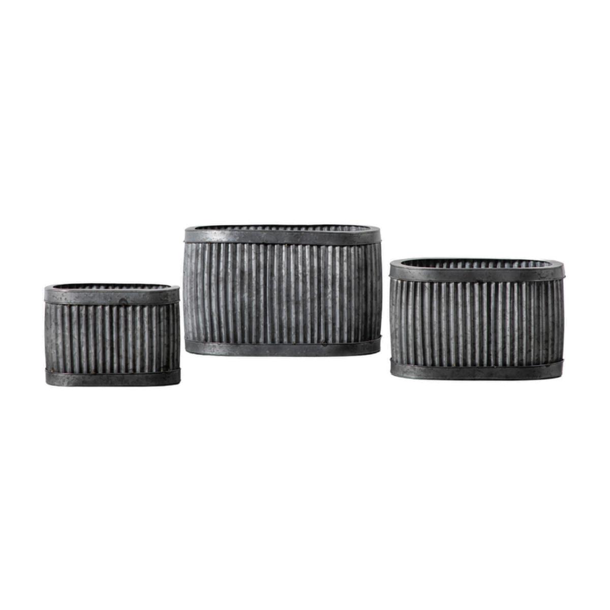 Growing your own natural haven has never been so easy with the Cultivator Wide Planter, Set of Three, with three eye-catching round metal planters in a stormy grey finish, with galvanised iron so you can have your haven indoors or outdoors!