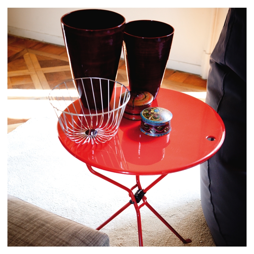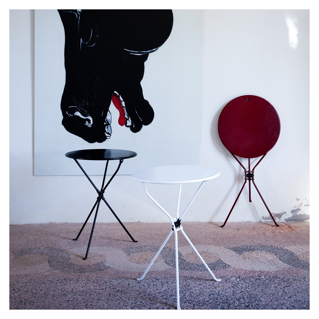 Designed in 1978 by Achille Castiglioni, the Cumano Folding Side Table is a compact side table crafted in amaranth-hued steel with an elegantly practical folding top. The Cumano Folding Side Table features a sliding ABS joint, allowing for the steel table top to be quickly and simply tilted upright, and for one of its steel legs to be elevated to provide compact storage. This uncomplicated design showcases Castiglioni's architectural approach to design, which awards this piece faultless functionality and style. Manufactured by Italian leaders in industrial design, Zanotta, the Cumano Folding Side Table in amaranth would make a distinctive addition to any living space.
