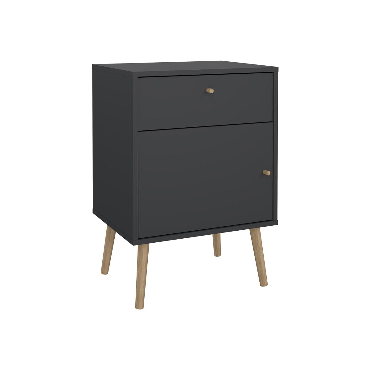 I’m a fan of this Cumbria bedside for its clean lines and mix of dark grey with light oak legs - it sits neatly in both Scandi-style and modern schemes. The small drawer and cupboard offer discreet storage, so it’s ideal for compact bedrooms or even as a living-room side table. To style, perch a slim-based lamp and a small potted plant on top, keeping the surface uncluttered. Use the drawer for chargers or bedtime essentials and the cupboard for extra blankets or magazines. A neat brass-finish frame mirror above will tie in nicely with the knobs.