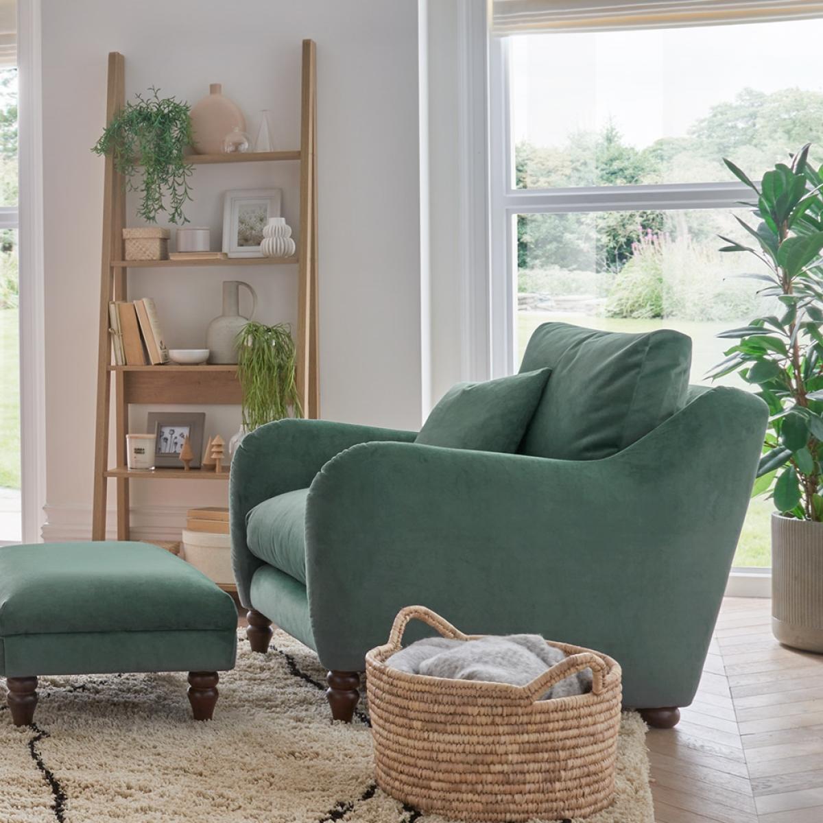 Cosy up with the Cumulo Armchair - the perfect spot to focus on you! Designed with a deep seat, sloped back and swoon-worthy curves; settle into the luxurious fibre filled cushions and lose track of all time. And when you thought it couldn't get comfier, the Cumulo Armchair comes with a feather filled scatter cushion! Part of the Cumulo collection, pair with the coordinating footstool or ottoman, to take this to another level of comfortable. All handcrafted with care in the UK, the responsibly sourced hardwood frames sit off the ground, resting on turned solid wood legs in a rich walnut finish. Stylish and sophisticated; choose from our selection of irresistibly soft and luxurious fabrics, from deep jewel tones to neutral linens - completely transform your living room!.