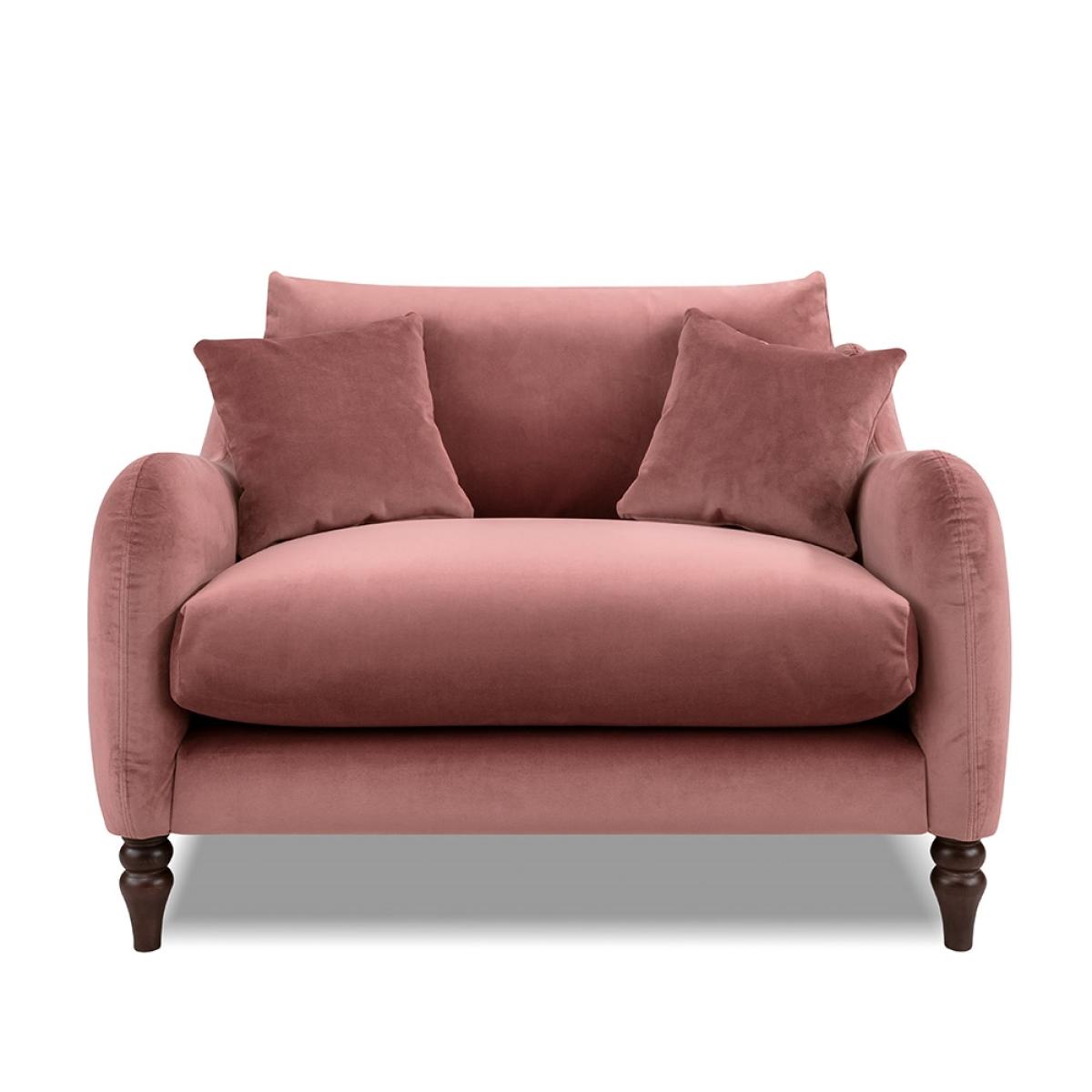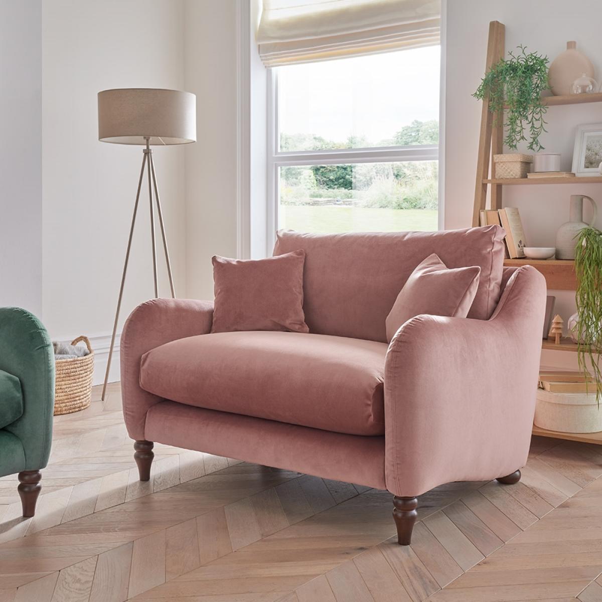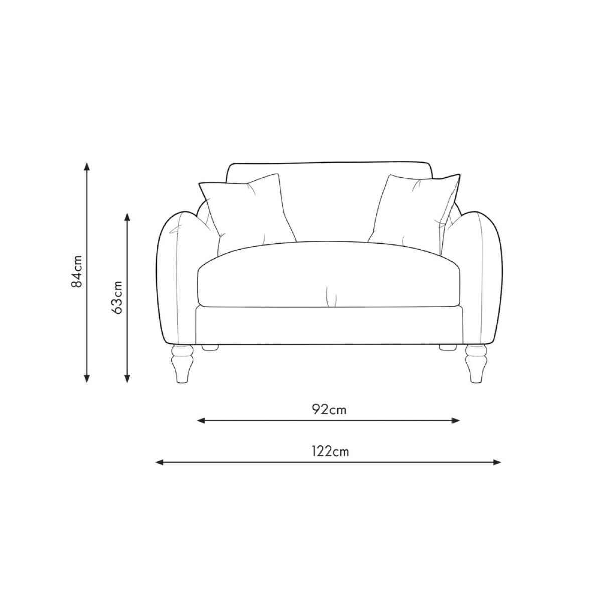 You'll fall head over heals with the Cumulo Love Seat! Designed with cloud-like, cosy cushions and a generously sized seat - the Cumulo armchair is calling out to be sat on! Snuggle into the feather filled scatter cushions, add a throw into the mix and grab the latest read for some much needed 'me time'. Sorting the mail? Tidying away? Washing up? They can wait. Pop your feet up with the coordinating footstool or ottoman and forget about those to-do lists. The rounded hardwood frame has been responsibly sourced and styled with handturned legs that look and feel like you're floating on air. Choose from our sumptuously soft selection of fabrics and pick out colours to compliment your existing decor or completely update the look of your living room and use your Cumulo Love Seat as your inspiration! Super easy to assemble, you'll be snuggled up in seconds!.