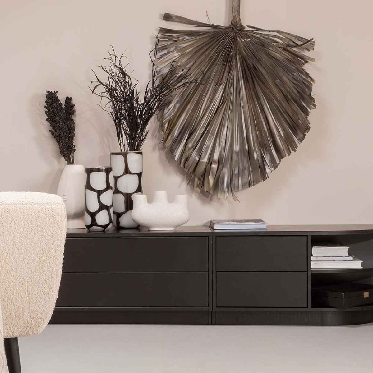 I love this quirky piece because of its modern, sculptural shape that adds visual interest without overwhelming a space. The neutral tone and matte finish make it incredibly versatile, working well in minimal, Scandinavian, or contemporary interiors. It serves as a striking standalone feature on coffee tables or shelves, but also looks great filled with fresh or dried flowers for colour and texture. Practical styling tips include pairing it with other textural ceramics or adding the unique vase to a monochrome or neutral palette for a touch of personality. It’s perfect for creating a curated yet effortless look in living rooms, bedrooms, or office spaces.