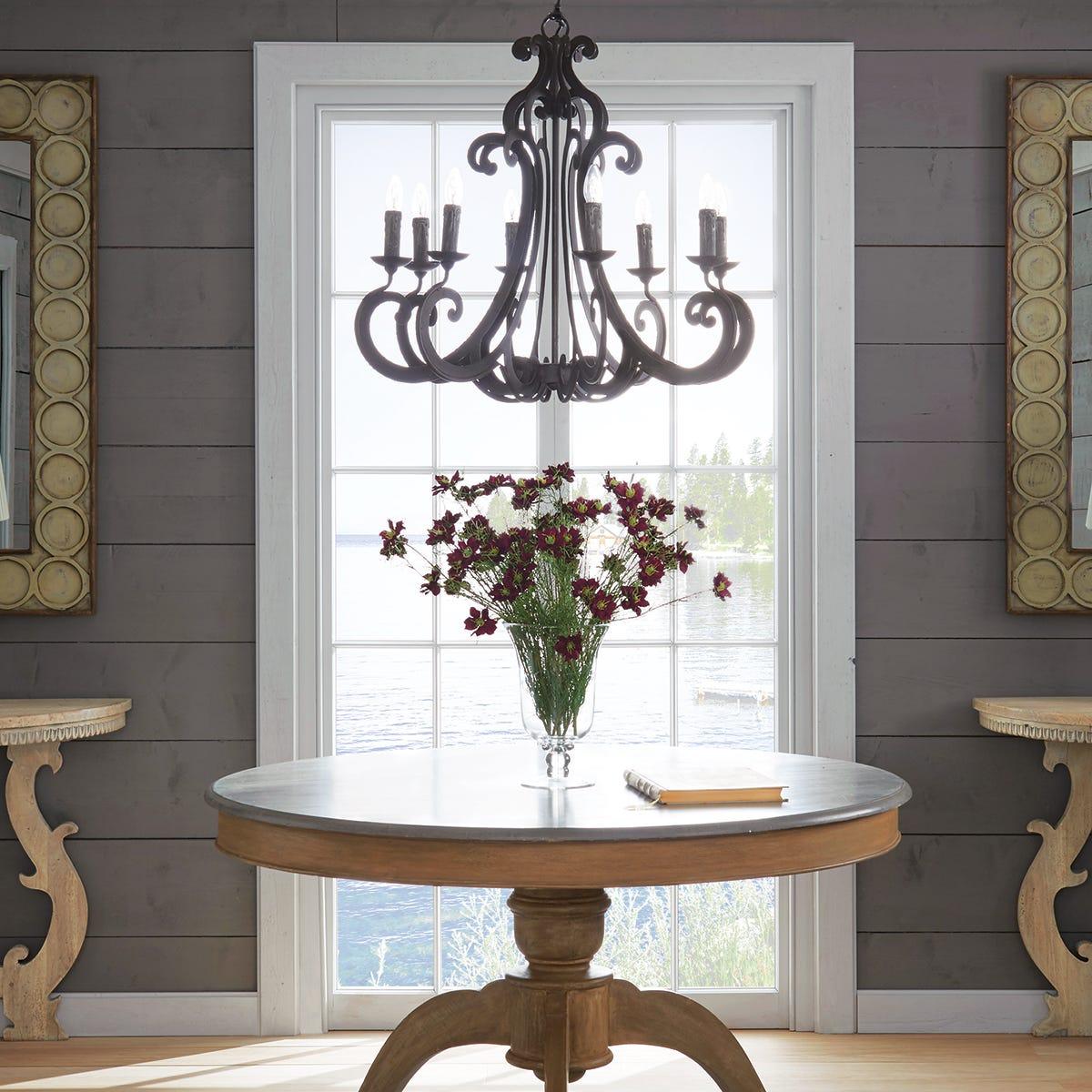 I love this chandelier for its antique grey finish, which adds a touch of vintage elegance without feeling overly traditional. It works particularly well in eclectic or rustic interiors, where its muted tone can complement distressed woods or exposed brick, but it can also elevate more refined spaces when paired with classic furnishings. For styling, consider keeping surrounding decor simple to let the chandelier be a statement piece, or layer with matching antique accessories for a cohesive look. Practical tips include hanging it at the right height-usually around 30-35cm above a dining table or in a large vestibule-to maximise its visual impact without overwhelming the room.