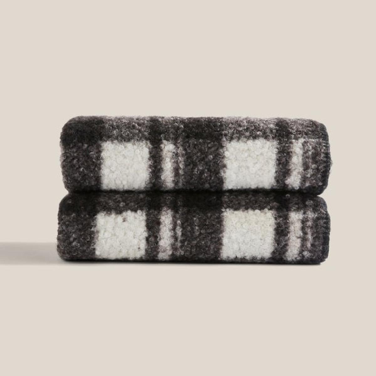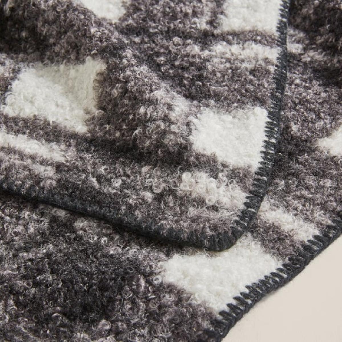 Curly Sherpa Check Throw Blanket 130cm x 170cm