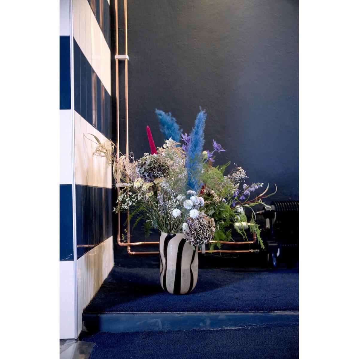Curt vase 30 cm by Swedish Byon - a handmade glass vase with beautiful stripped curves. The wide opening of the vase allows you to display large flower bouquets or single cut flowers. ​ This versatile vase has many uses in the home.