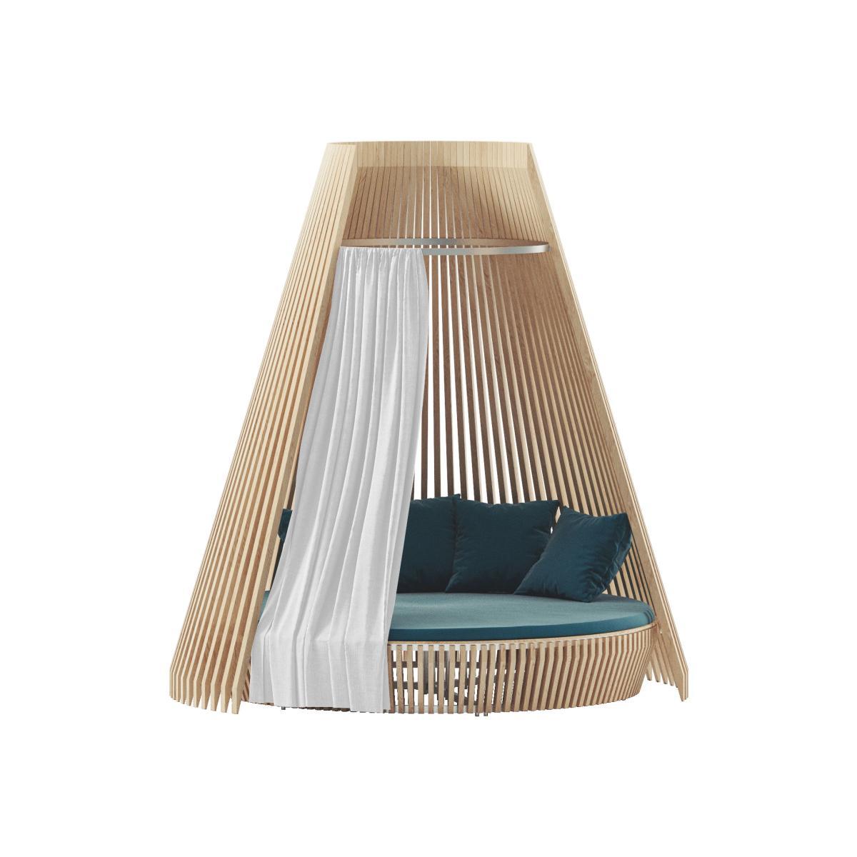 PLEASE NOTE. Curtain sold on its own: wooden structure sold separately. This large curtain is suitable for the Hut daybed. It helps to "close the nest", protecting it from direct sunlight. Suitable for outdoor use, this curtain is weather- and UV-resistant.
