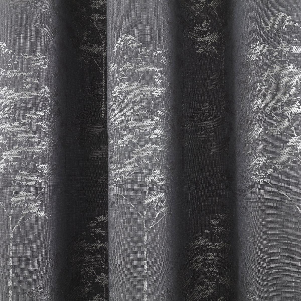 A subtle metallic sheen gives this heavyweight jacquard fabric a quality, contemporary feel. With its trendy graphite coloured woven background and fine silver foliage detailing, this pair of curtains will bring a real texture and depth to a range of interior layouts. It is finished with a chrome eyelet heading allowing for easy installation and a full, undulating drape, and is fully lined for improved insulation and light filtration. A matching cushion is also available, making it easier to create a stylish, coordinated look. Please note, pattern matching cannot be guaranteed across multiple pairs of curtains. This Collection is verified by OEKO-TEX® and independently tested for harmful substances. It stands for customer confidence and high product safety.