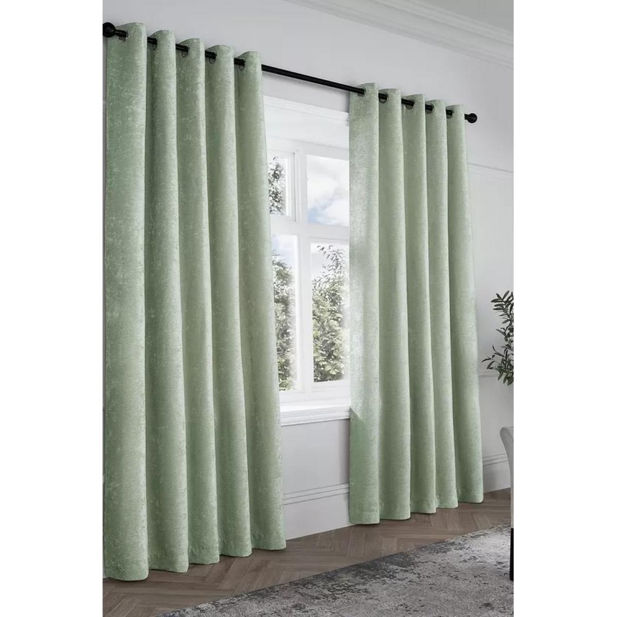 Curtina Textured Chenille Lined Eyelet Curtains - Green - 66 x 90