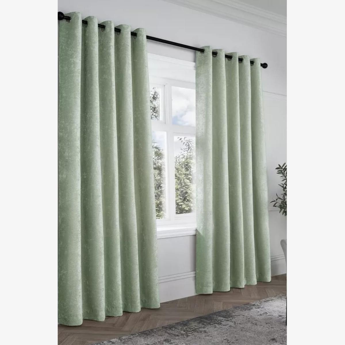 Curtina Textured Chenille Lined Eyelet Curtains - Green - 90 x 72