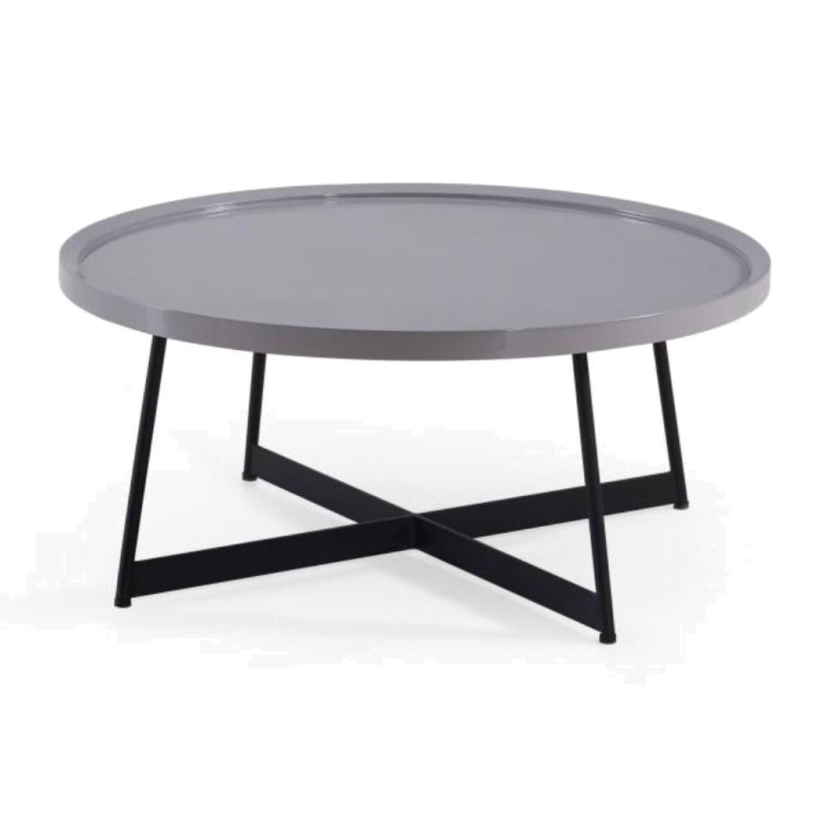 Curtis circular coffee table with high gloss, light grey tabletop and dark metal legs.. The Curtis Coffee Table is a captivating fusion of contemporary design and timeless allure. Crafted with a light grey high gloss finish and supported by sleek dark metal legs, this table exudes sophistication and modernity. The circular silhouette adds a sense of fluidity and elegance to any living space, while the contrasting colours create a striking visual impact. Whether you're enjoying a casual morning coffee or entertaining guests, the Curtis Coffee Table serves as a stylish centrepiece, elevating the ambiance of your home with its chic design.