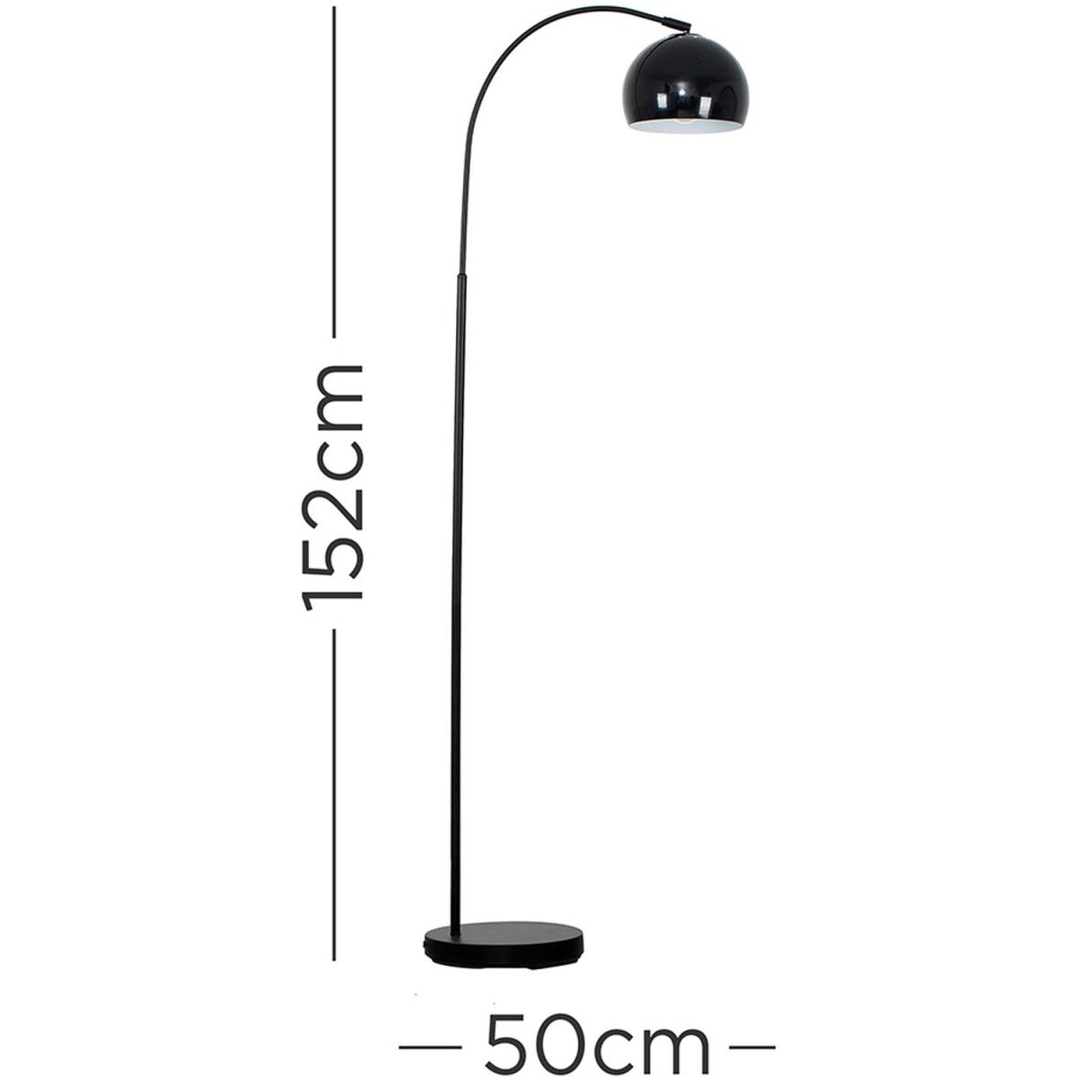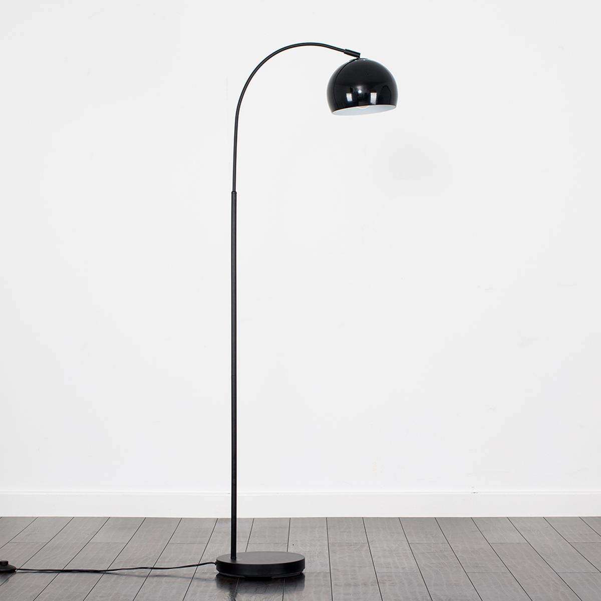 Curva Black Floor Lamp With Gloss Black Metal Dome Shade - Black