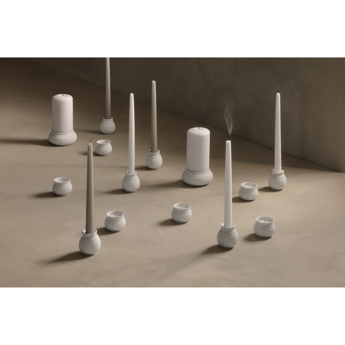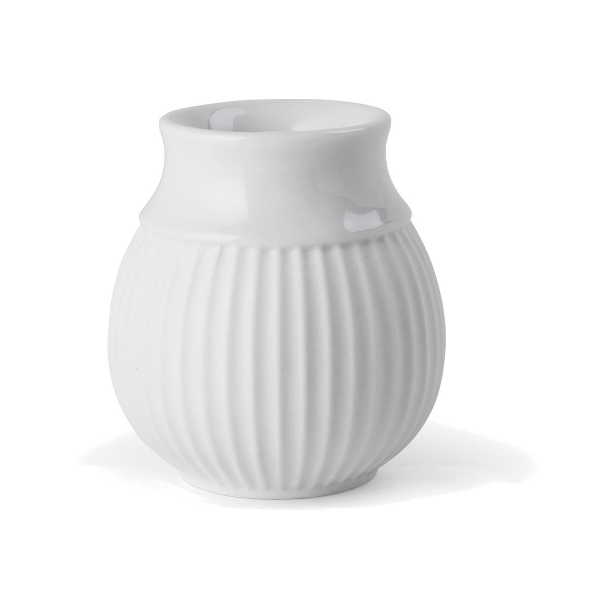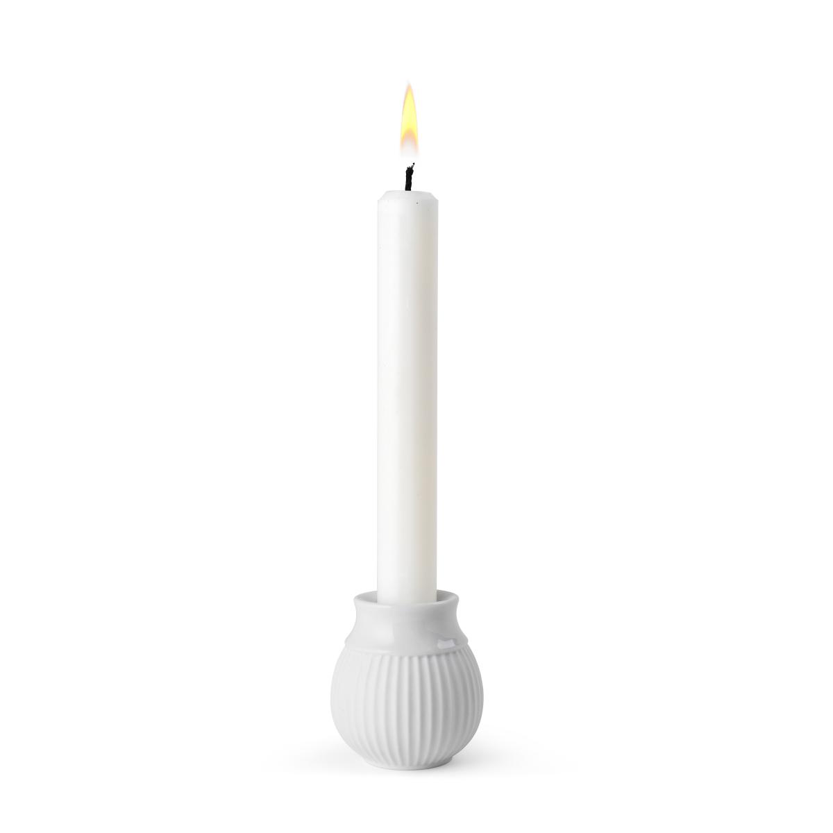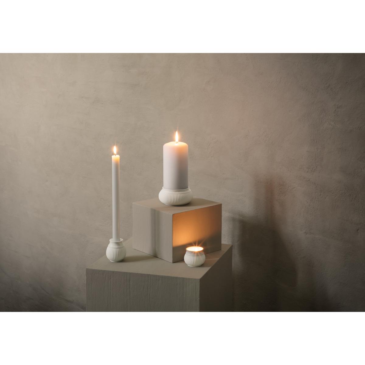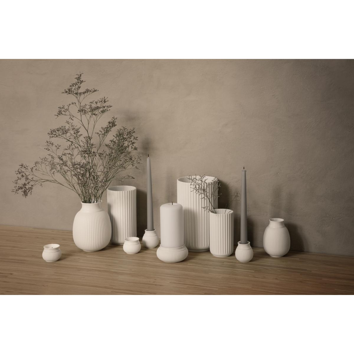 Curve candlestick 7 cm from Lyngby Porcelean has room for a tealight. This is made of precelain in an oval egg-like shape. The glossy finish on this candlestick brings forth its vertical grooves and the smooth upper edge, and its elegant design works with or without a candle. Let the Curve candlestick shine on its own or use it with other products in this series for a complementary aesthetic.