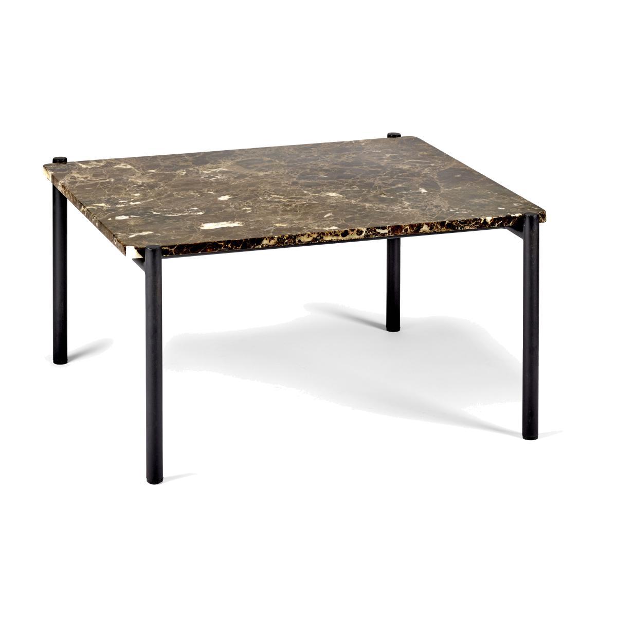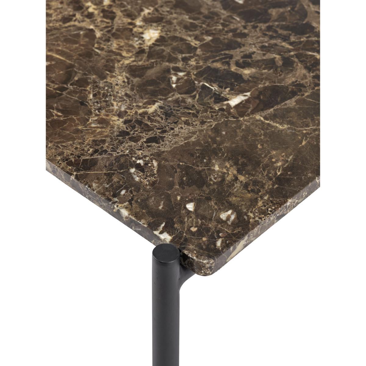 A chic hand sophisticated style for this coffee table with a wonderful marble top with brown hues. Enhance your home by betting on the naturally noble, graphical and timeless character of marble. The black metal base sports minimalist and modern lines. This coffee table will go equally as well in very modern and more traditional interiors.