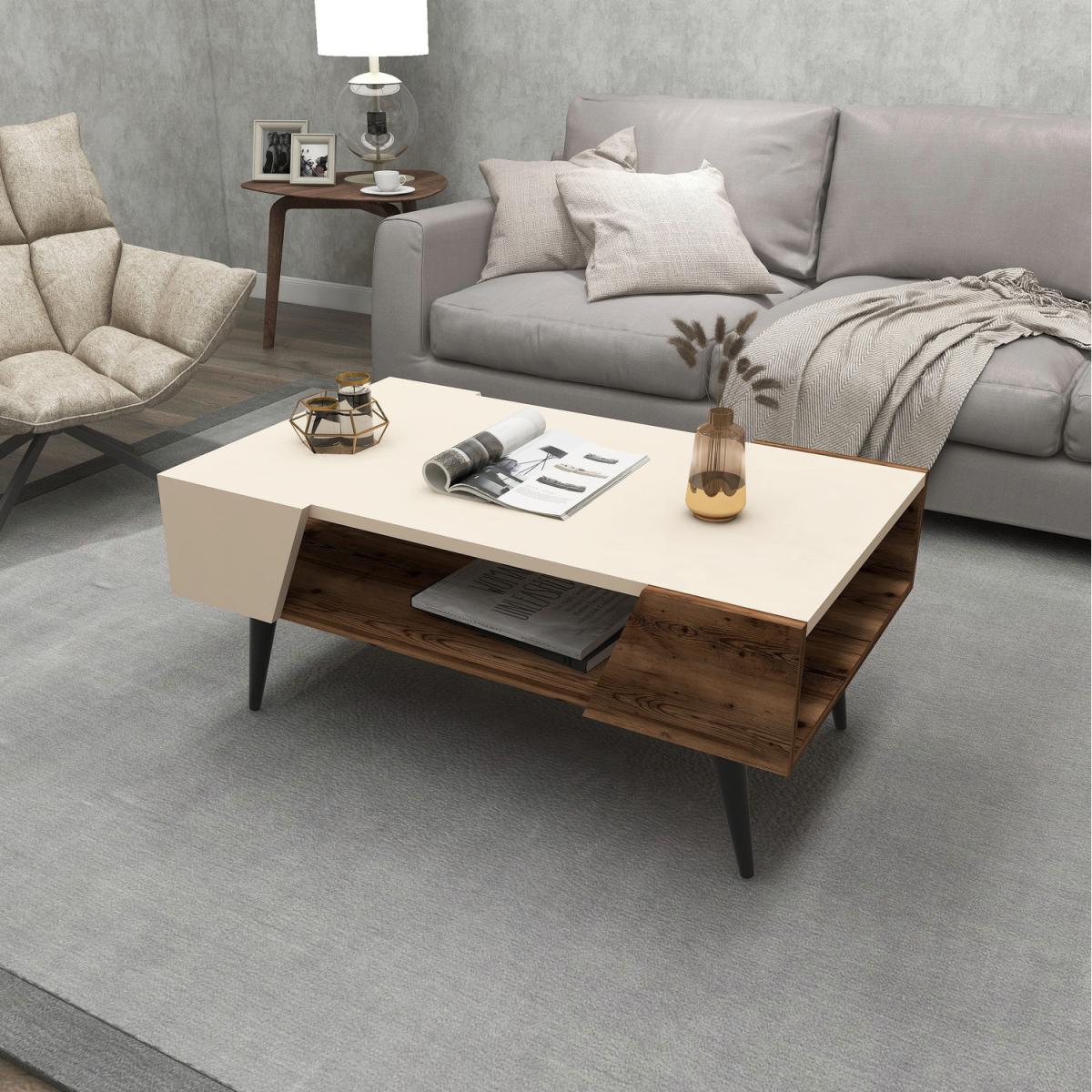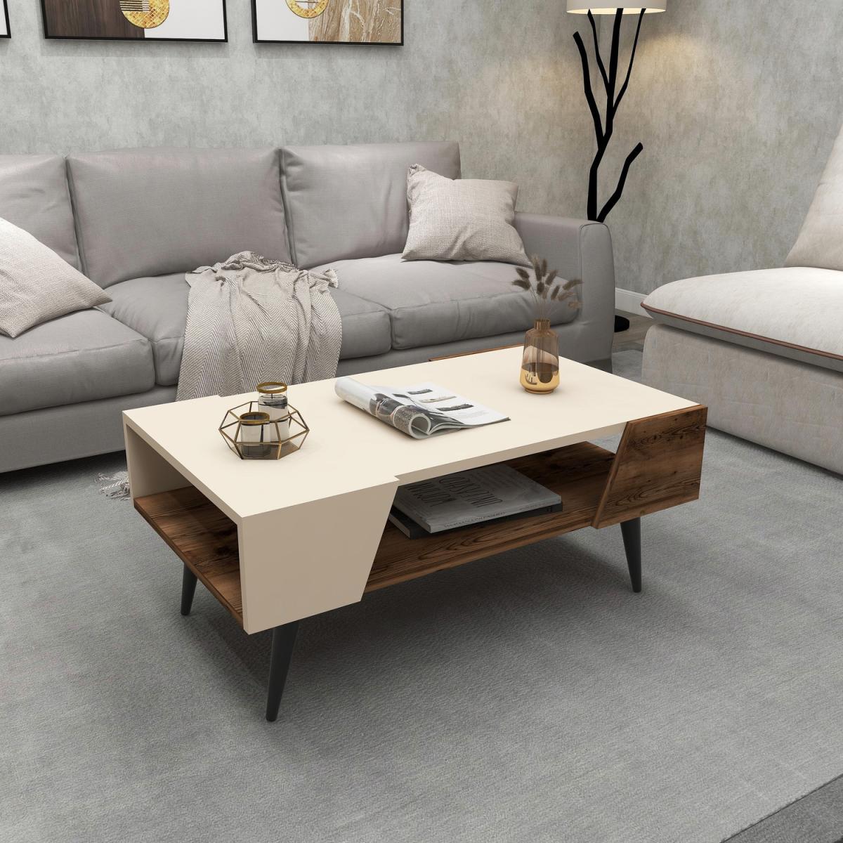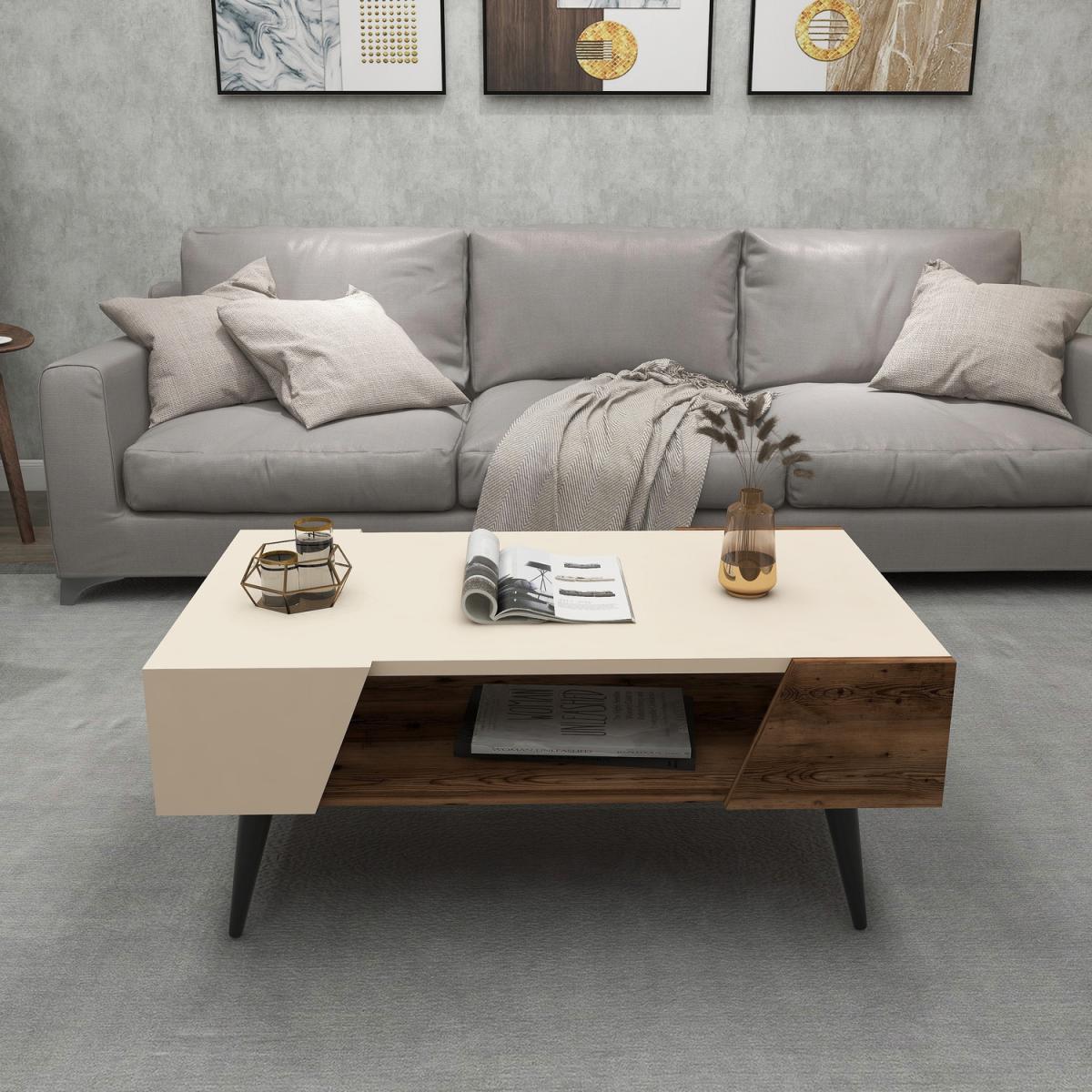 MATERIAL The coffee table is made of an 18 mm thick quality melamine-coated particleboard. The manufactured wood surface is water-resistant to some extent and the edges are banded with PVC edge banding tape. Legs are constructed from quality wooden plastic. The handle is metal. First-class assemblyinstallation hardware and accessories are used. Our products are produced from certified quality raw materials that do not contain carcinogenic substances and comply with European Union health norms. CLEANING You can clean your furniture with a dry cloth. Avoid prolonged contact of your product with moisture and water. ASSEMBLY The product will be delivered to the customer in the original package as disassembled. It is designed to be assembled by the customer using a power drill and screwdriver. Assembly instruction and installation hardware are included in the package. For fast and error-free installation, product parts are numbered with stickers in accordance with the assembly guide.