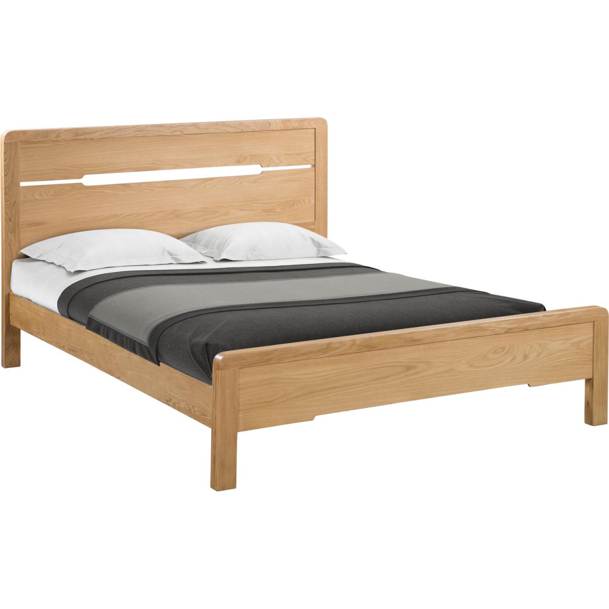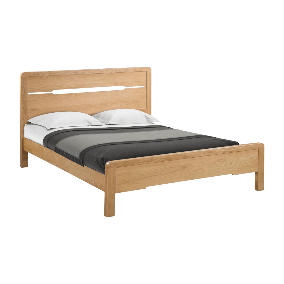 Crafted from solid white oak and oak veneers, the Curve combines clean lines with a gentle curved edging, adding a stunning touch to any bedroom. This Curve bed features a recessed handle styled headboard, to match the design of the bedroom range. With a solid wooden slatted base, to prolong mattress life, this Curve bed is available in 135cm double and 150cm king sizes. Part of the extensive Curve bedroom collection from Julian Bowen