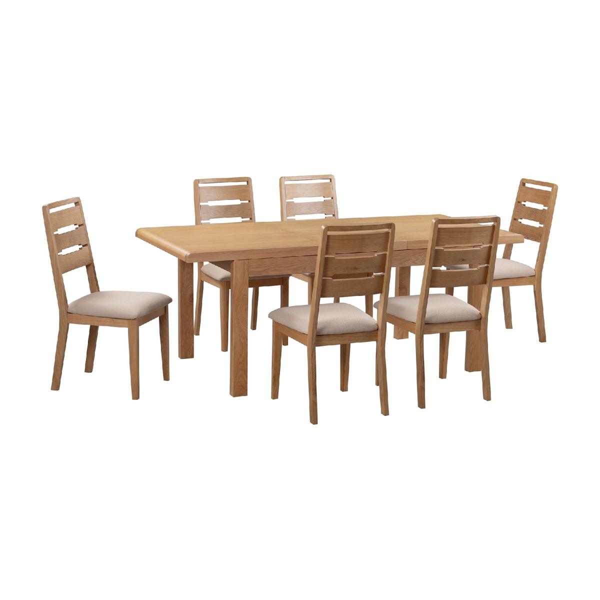 I love this set for its versatility and timeless appeal. The curved design gives it a contemporary yet approachable look that works well in both modern and traditional dining spaces. Its warm brown finish adds a cosy, inviting feel, making it ideal for casual family meals or more formal dinner parties. The extension feature provides practicality, allowing the table to adapt effortlessly for larger gatherings. For styling, pair it with neutral or patterned chairs, or add colourful accessories like placemats, runners, or cushions to inject personality. It’s particularly suited to open-plan kitchens or dining rooms that benefit from a focal point of understated elegance and functionality.