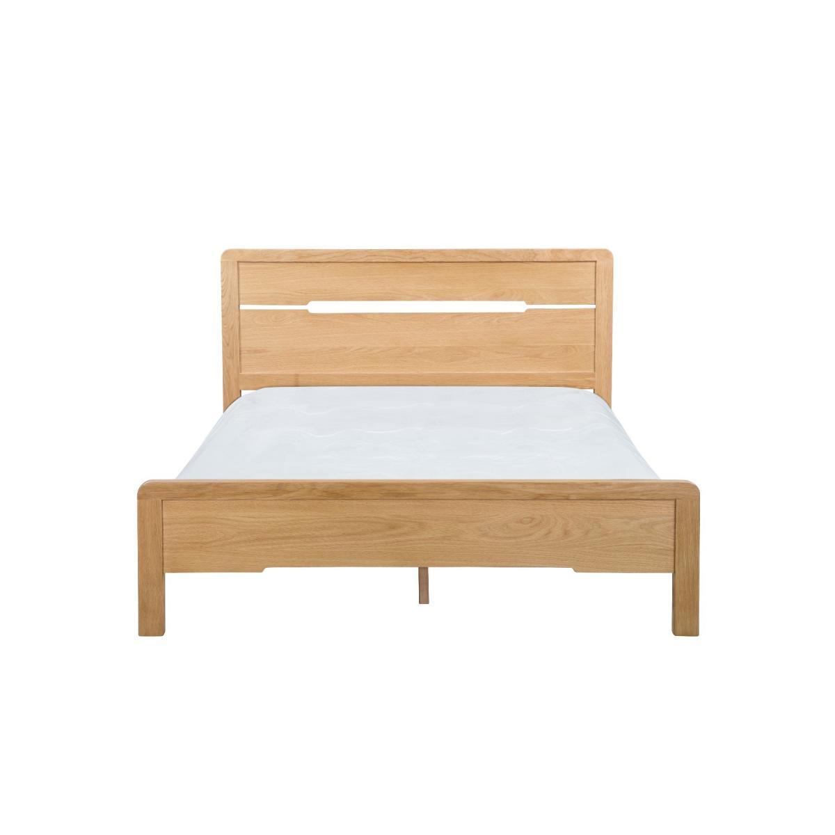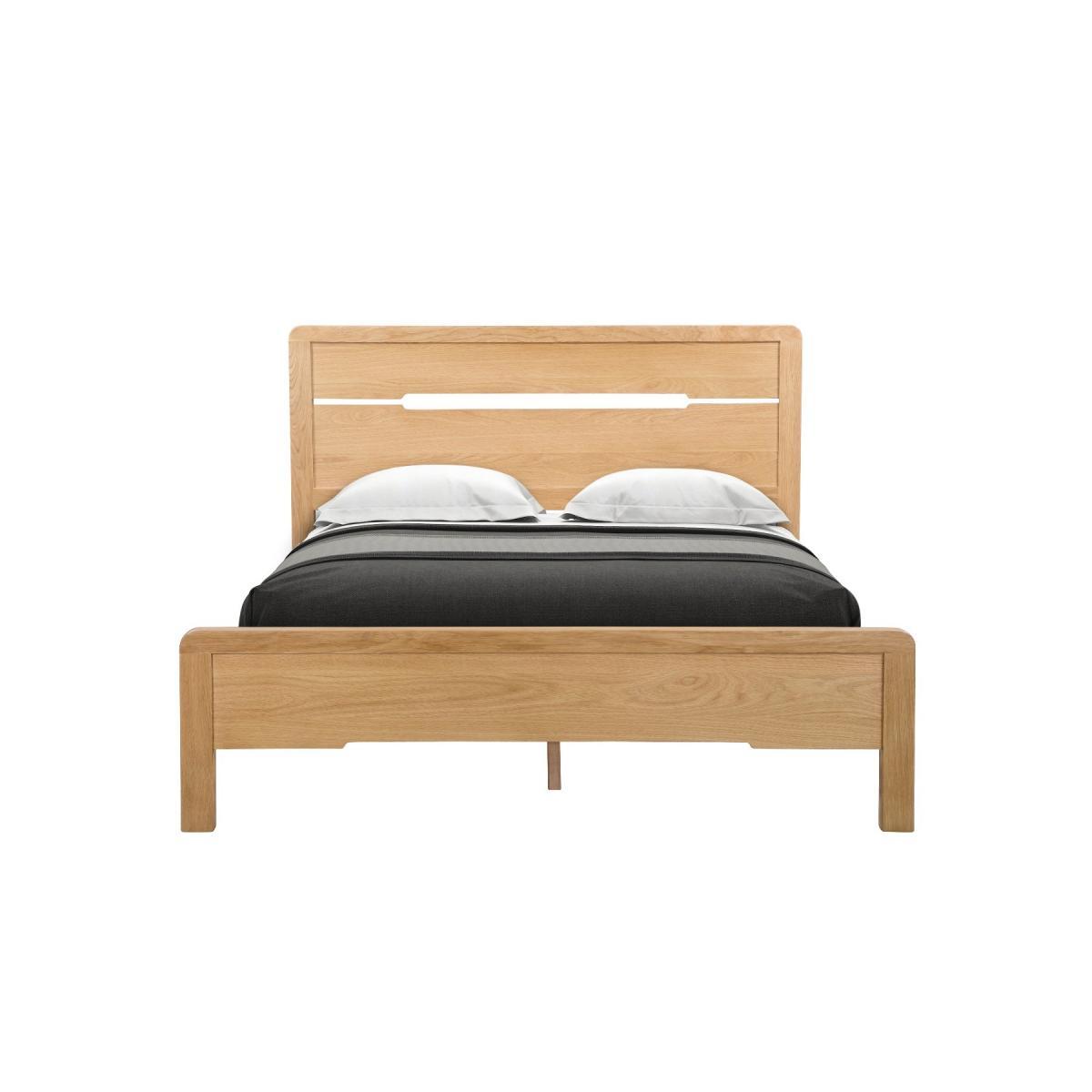 The Curve Kingsize Bed is the perfect option to create an elegant statement in any modern master bedroom. It looks elegant when teamed with other pieces in the Curve Collection by Julian Bowen and its curved edging and recessed handle style headboard look stylish in many different spaces. The natural wood colouring is easy to pair with many bedding collections and room styles. Standard UK king size bed Supportive wooden slatted base ensures comfort and helps prolong mattress life Part of the extensive modern Curve Bedroom Collection by Julian Bowen Solid white oak and oak veneer construction