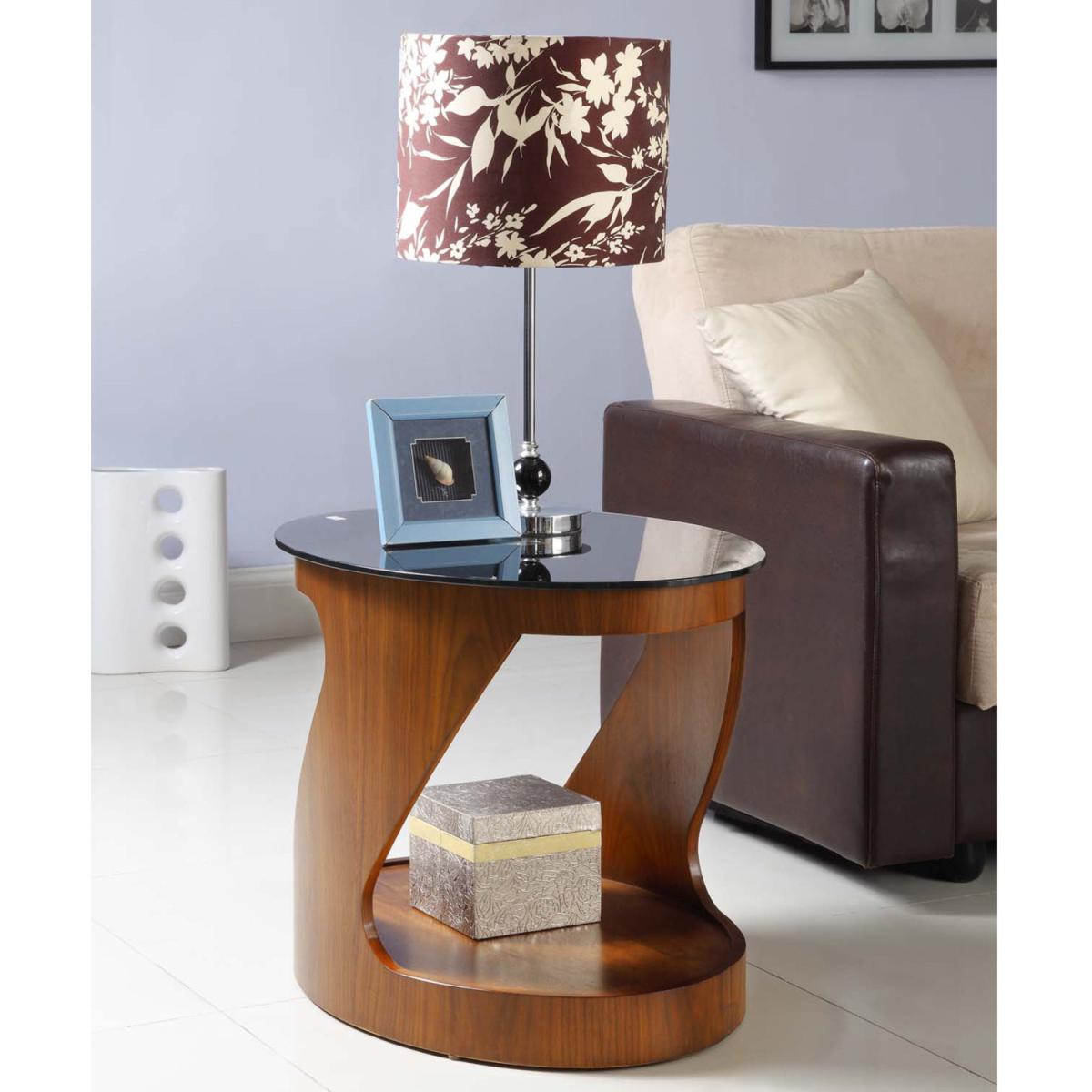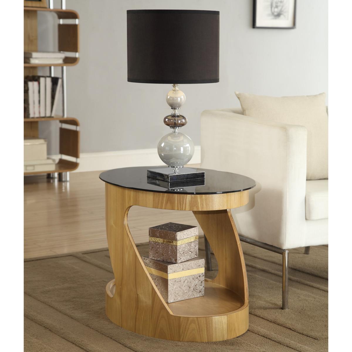 The unique shape, wood veneers and modern 'Piano Black' Glass help to create a stylish and elegant lamp table that is sure to bring a little retro flair to your home. The Curve Lamp Table brilliantly blends style with practicality, with a lower shelf that provides a space for open storage for everyday items like books and magazines.